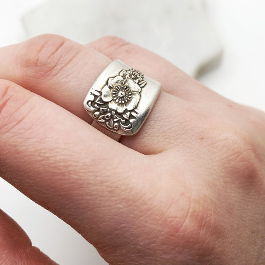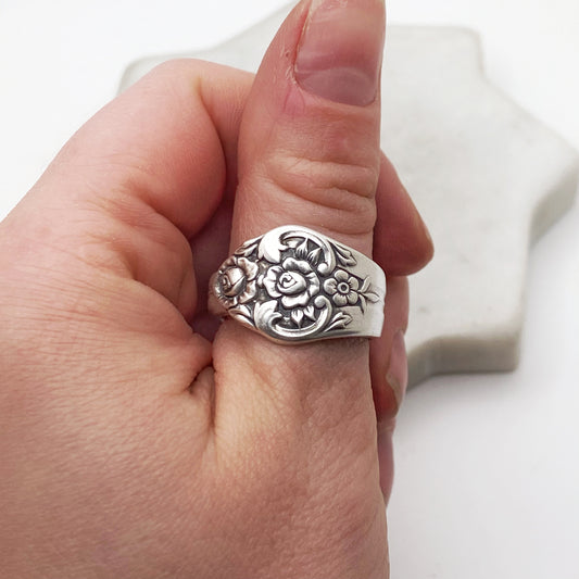 Plantation (Roses) 1948, Custom Size Spoon Ring, Vintage Silverware Ring