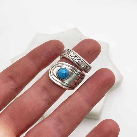 Fortune 1932, Turquoise Rivet, Custom Size Spiral Spoon Ring, Vintage Spoon Ring