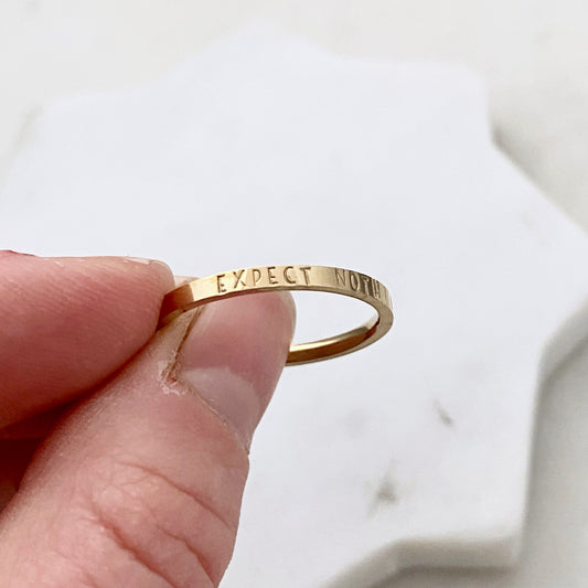 Expect Nothing, Size 9, Gold Mini Stacking Ring, Stainless Steel Jewelry, Minimalist Rings, Waterproof Jewelry, Dainty Ring, Stacking Ring Set