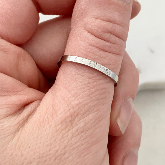 I am Enough, Size 8, Silver Mini Stacking Ring, Stainless Steel Jewelry, Minimalist Rings, Waterproof Jewelry, Dainty Ring, Stacking Ring Set