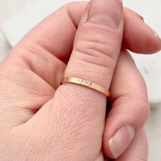 Mama, Size 7, Rose Gold Mini Stacking Ring, Stainless Steel Jewelry, Minimalist Rings, Waterproof Jewelry, Dainty Ring, Stacking Ring Set