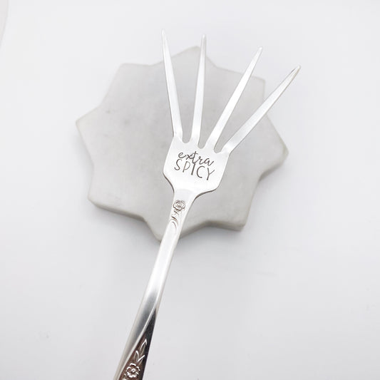 Extra Spicy, Caesar Cocktail Fork, Bloody Mary Garnish Fork, Hand Stamped Vintage Fork