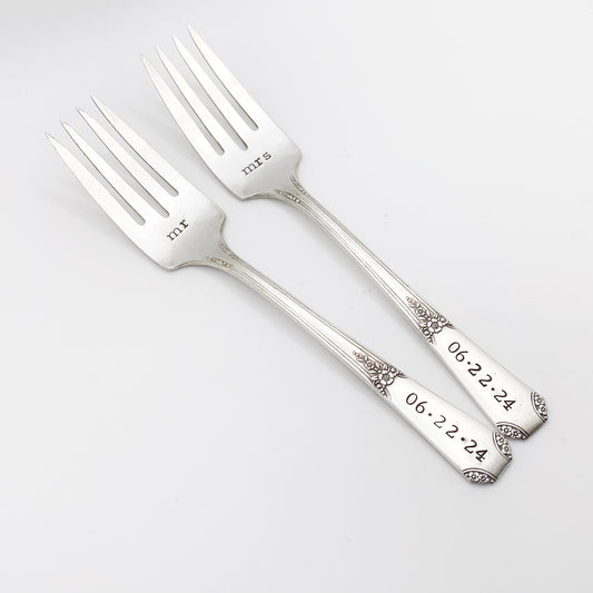 Mr & Mrs, Wedding Fork SET, Hand Stamped Vintage Fork