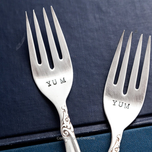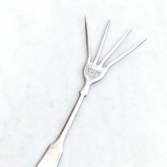 Yum, Hand Stamped Vintage Fork