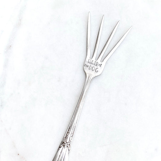 Hair of the Dog, Caesar Cocktail Fork, Bloody Mary Garnish Fork, Hand Stamped Vintage Fork