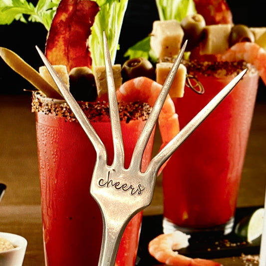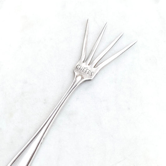 Cheers, Caesar Cocktail Fork, Bloody Mary Garnish Fork, Hand Stamped Vintage Fork