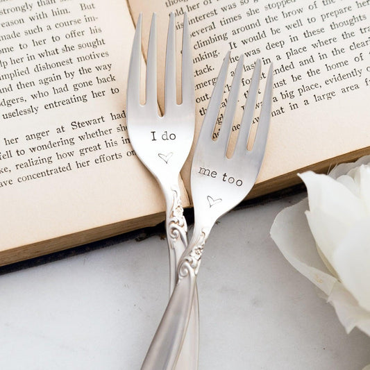 I Do & Me Too, Wedding Fork SET, Hand Stamped Vintage Forks