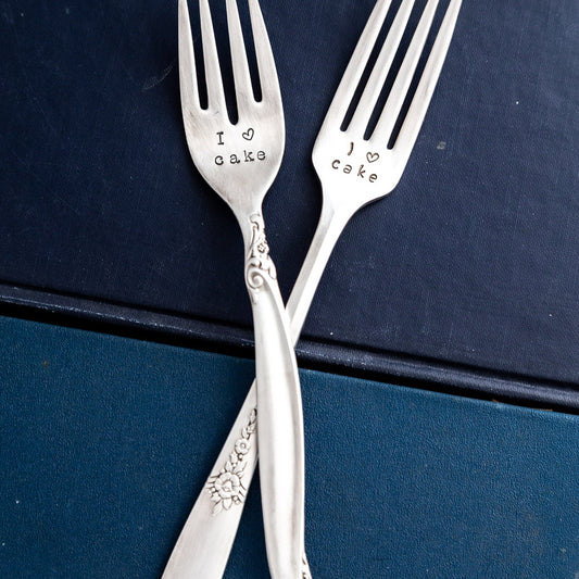 I <3 Cake, Hand Stamped Vintage Fork