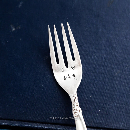 I <3 Pie, Hand Stamped Vintage Fork