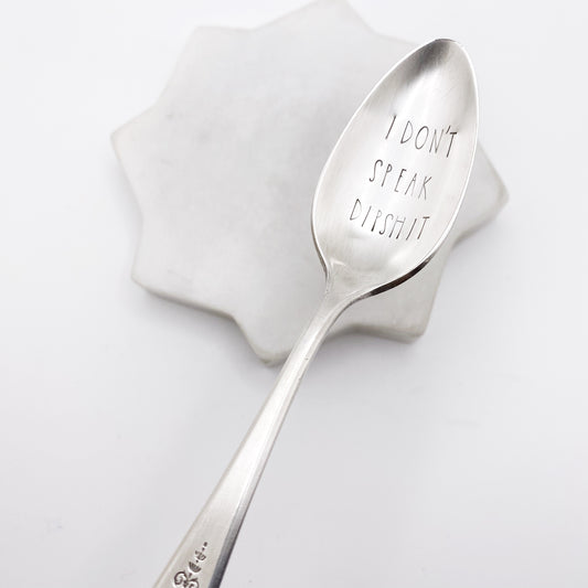 I Don't Speak Dipshit, Hand Stamped Vintage Spoon
