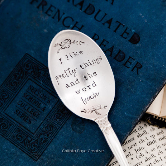 I Like Pretty Things & the Word Fuck, Hand Stamped Vintage Spoon