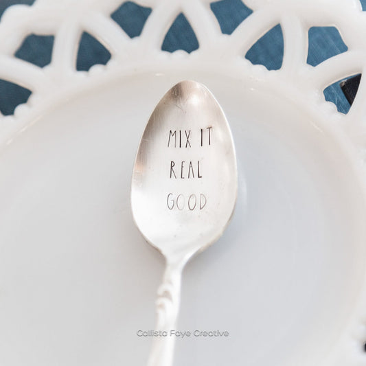 Mix It Real Good, Hand Stamped Vintage Spoon