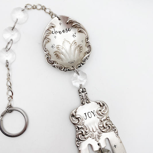 Choose Joy Sun Catcher, Large Sun Catcher Chandelier Crystal, Vintage Silverware Window Ornament