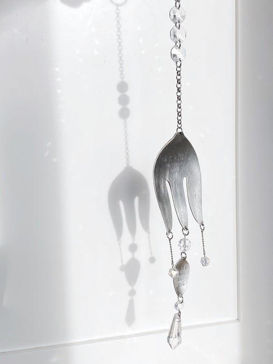 Rainbow Sun Catcher, Small Sun Catcher Crystal, Vintage Silverware Window Ornament