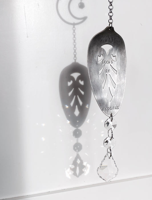 What I Focus on Expands Sun Catcher, Large Sun Catcher Crystal, Vintage Silverware Window Ornament