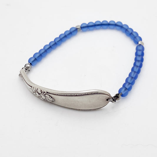 Adventure, Yellow Sea Glass, Beaded Silverware Stretch Bracelet, Vintage Spoon Handle, Antique Spoon Bracelet