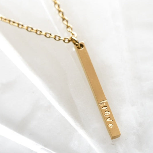 Brave, Hand Stamped Vertical Bar Necklace