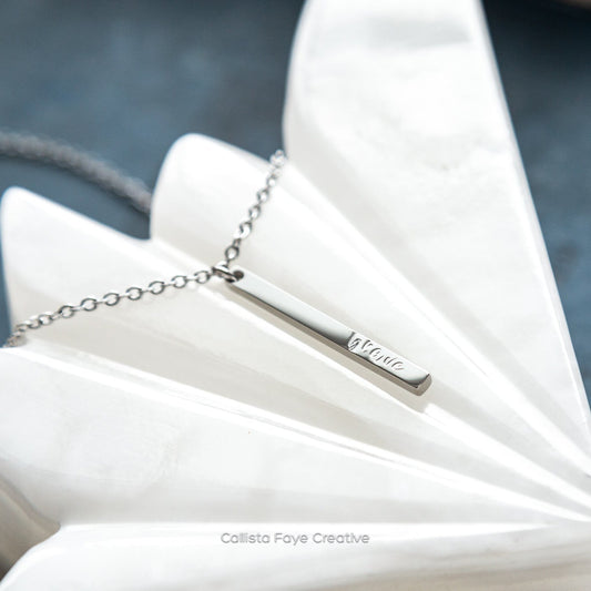Breathe, Hand Stamped Vertical Bar Necklace
