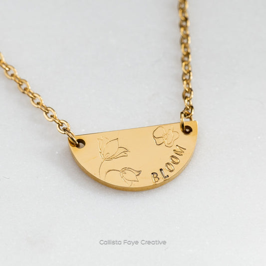 Bloom, Hand Stamped Half Moon Necklace