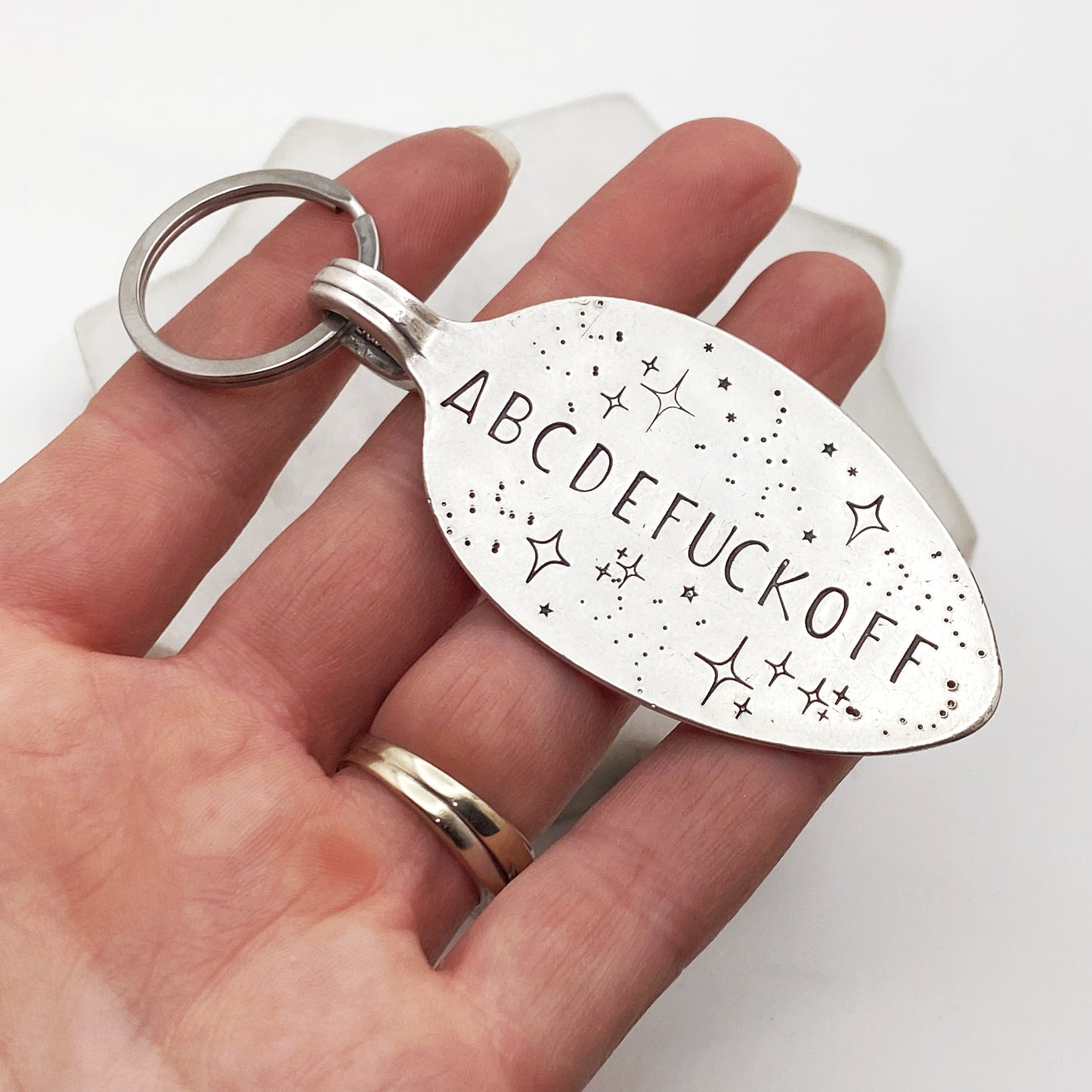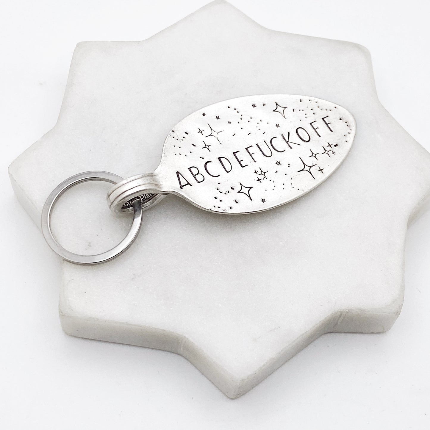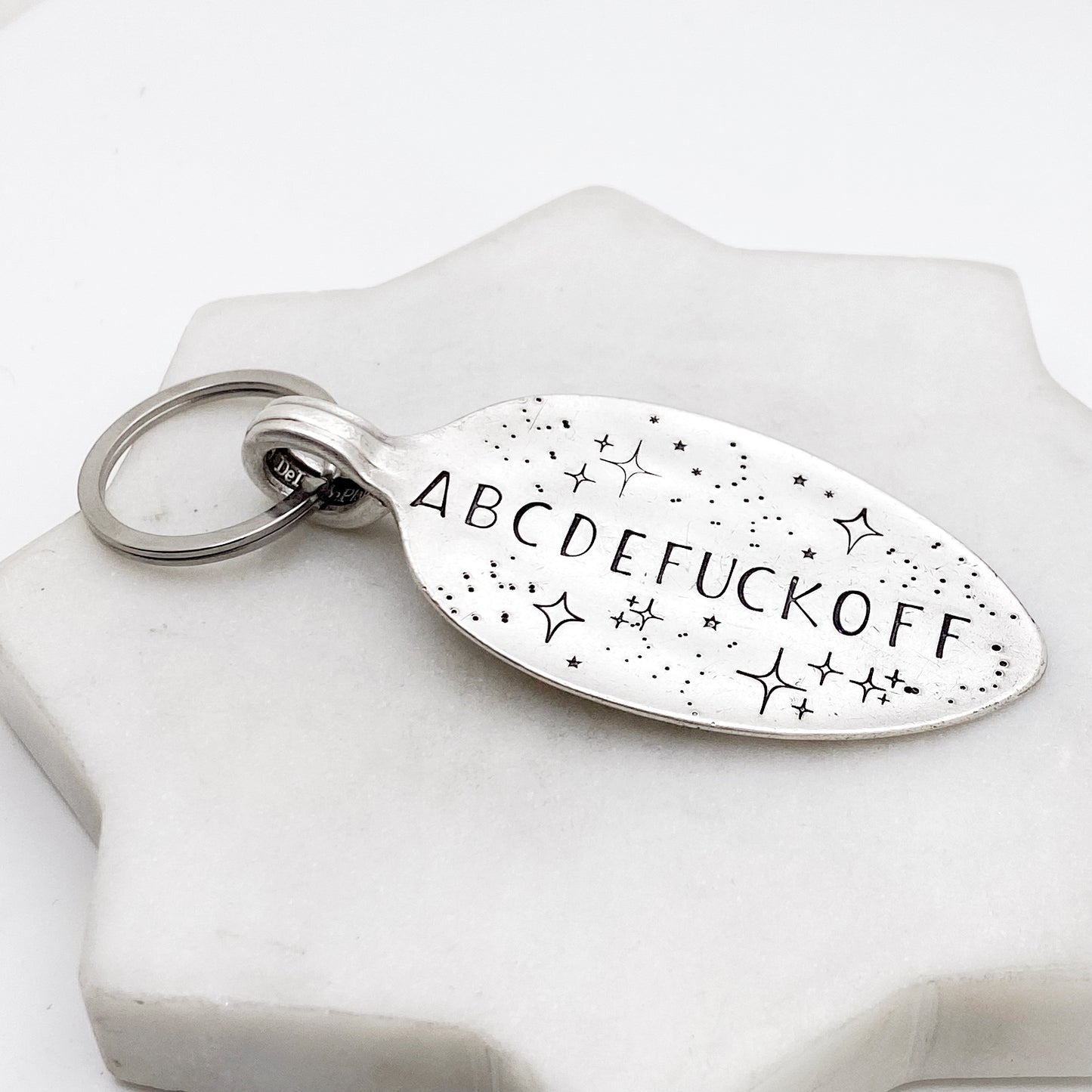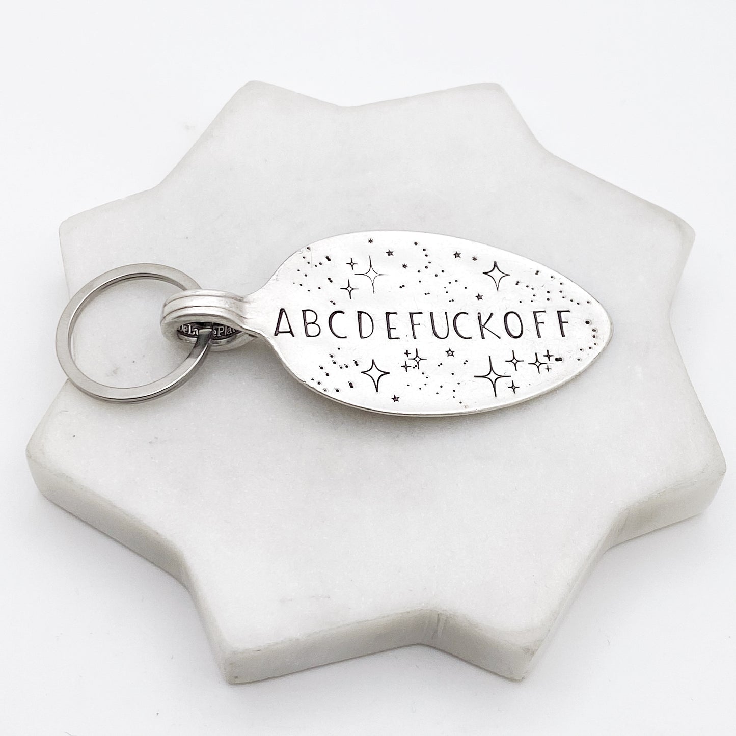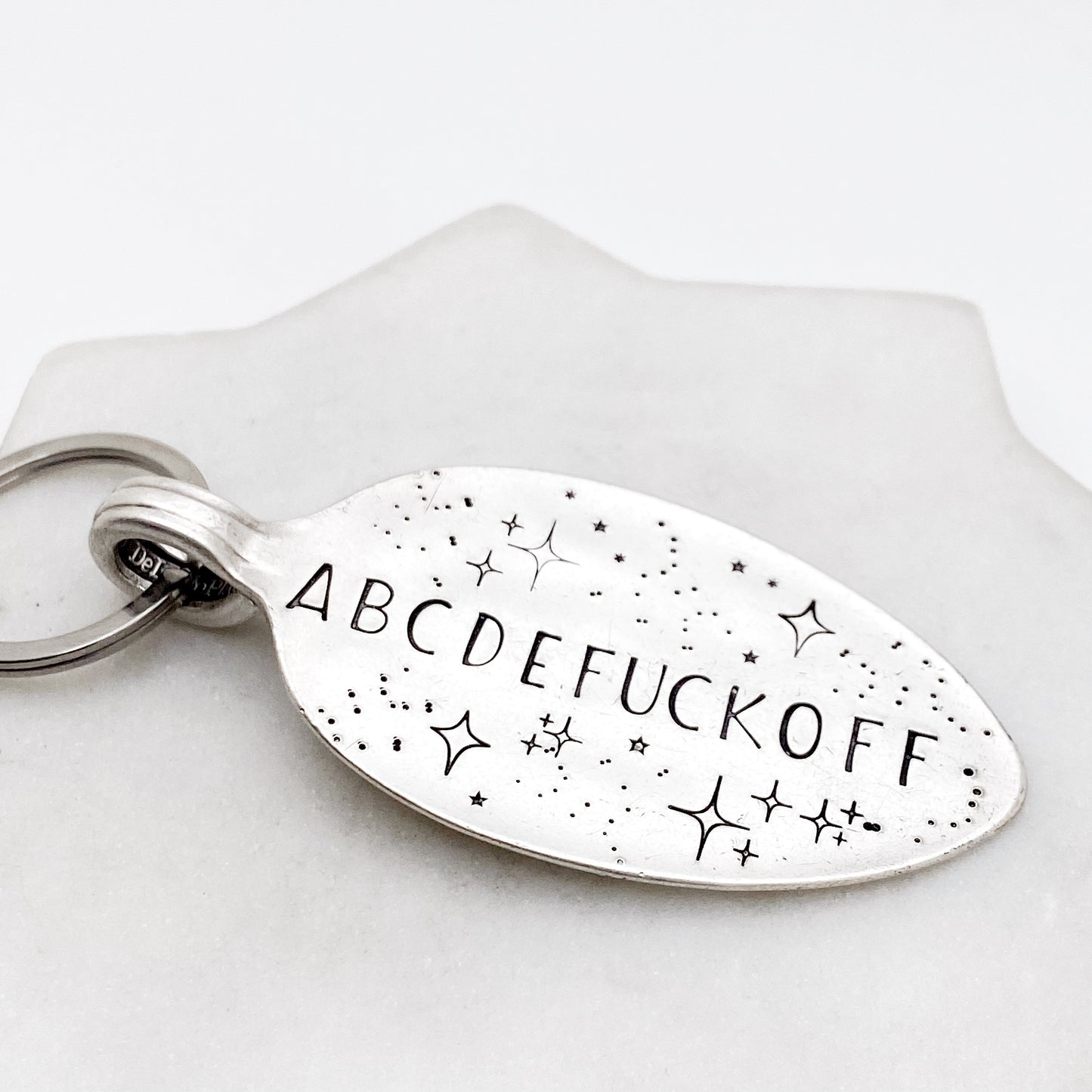 ABCDEFUCKOFF, Hand Stamped Vintage Spoon Keychain