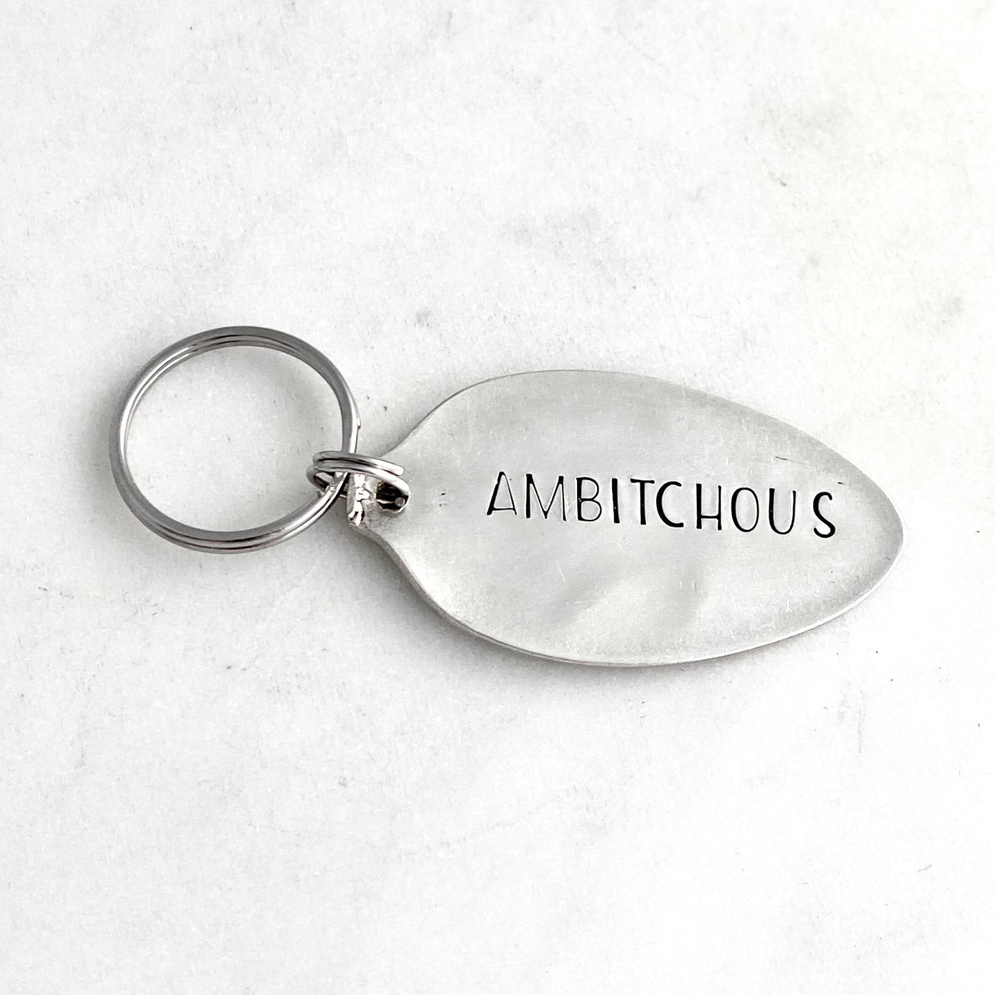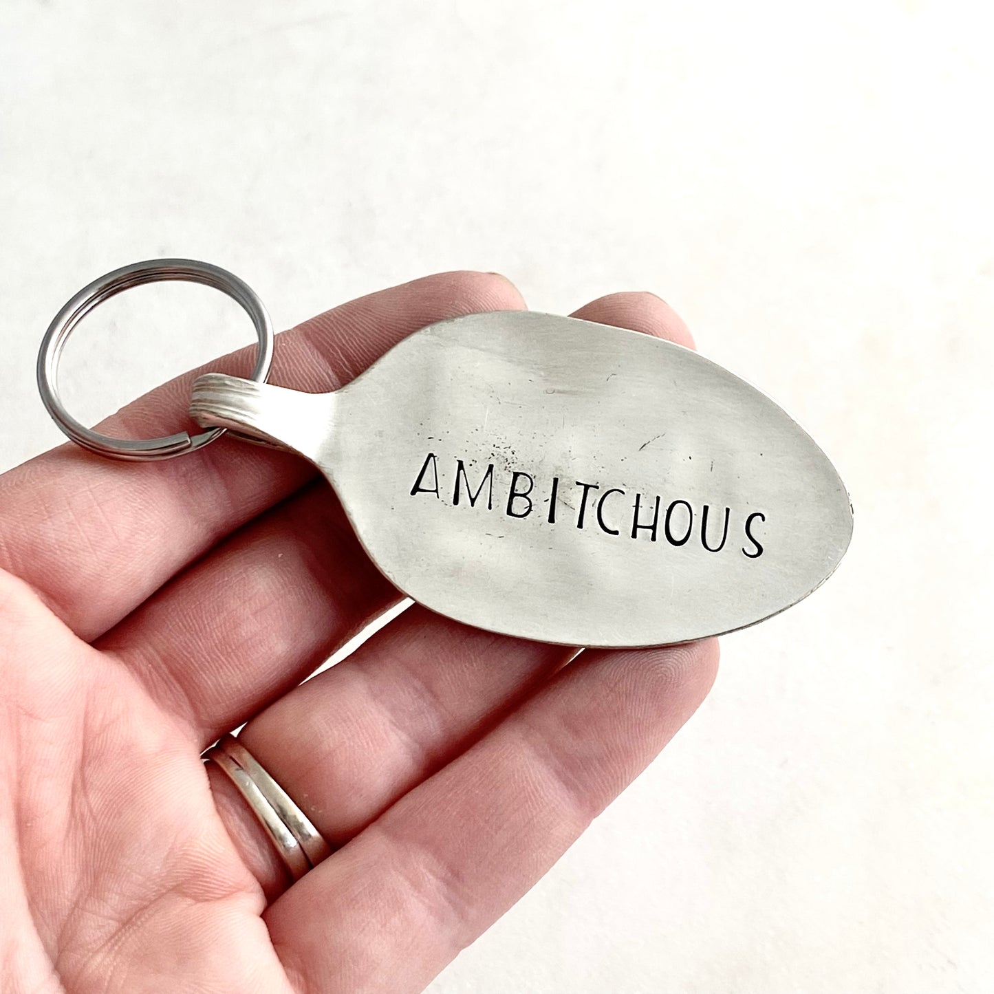 Ambitchous, Hand Stamped Vintage Spoon Keychain