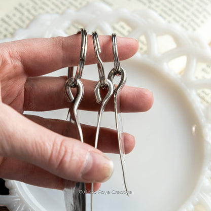 These keychains are made with recycled antique spoons that are too worn to use, giving them a brand new life. I flatten the bowl by hand with a mallet, and sometimes dimpling occurs. Keychain size & style may vary. These are made from my spoon ring cut offs (no waste!) and are completely random.