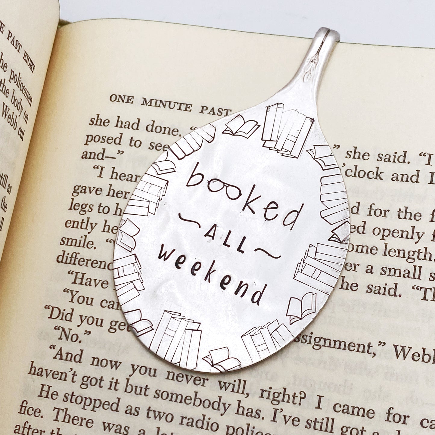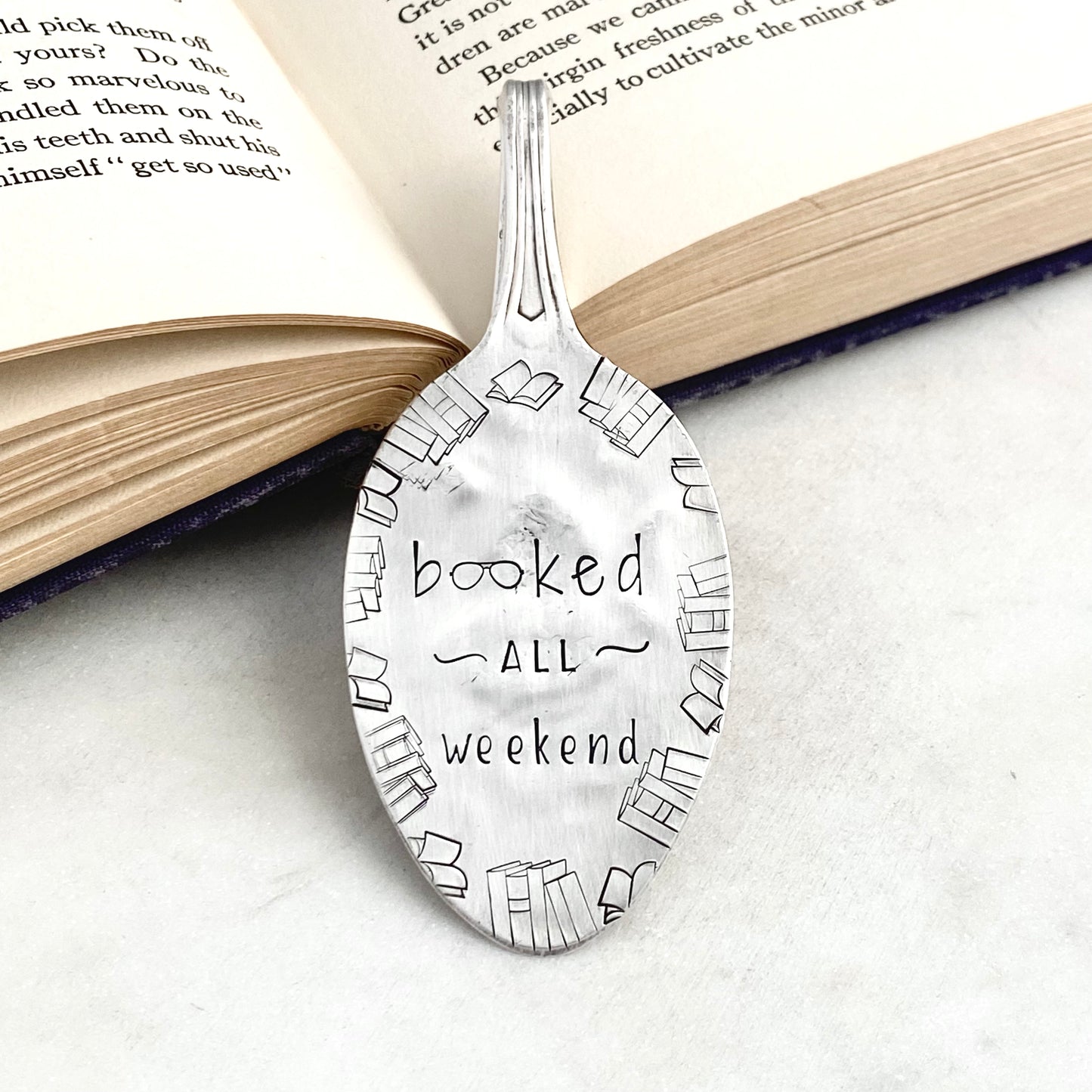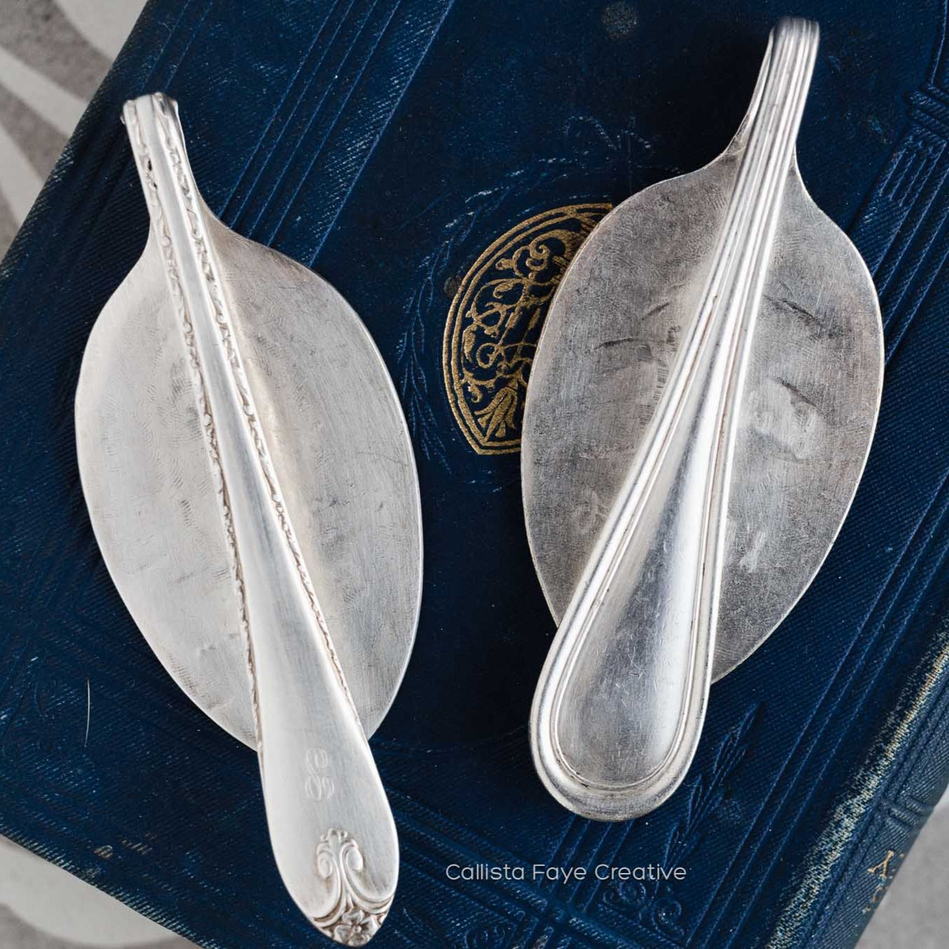 These bookmarks are made with recycled antique spoons that are too worn to use, giving them a brand new life. I flatten the bowl by hand with a mallet, and sometimes dimpling occurs. I use both tablespoons and soup (gumbo) spoons, so the bowl shape may vary.