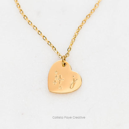 Custom Initial Petite Heart Pendant, Hand Stamped Heart Necklace, Personalized