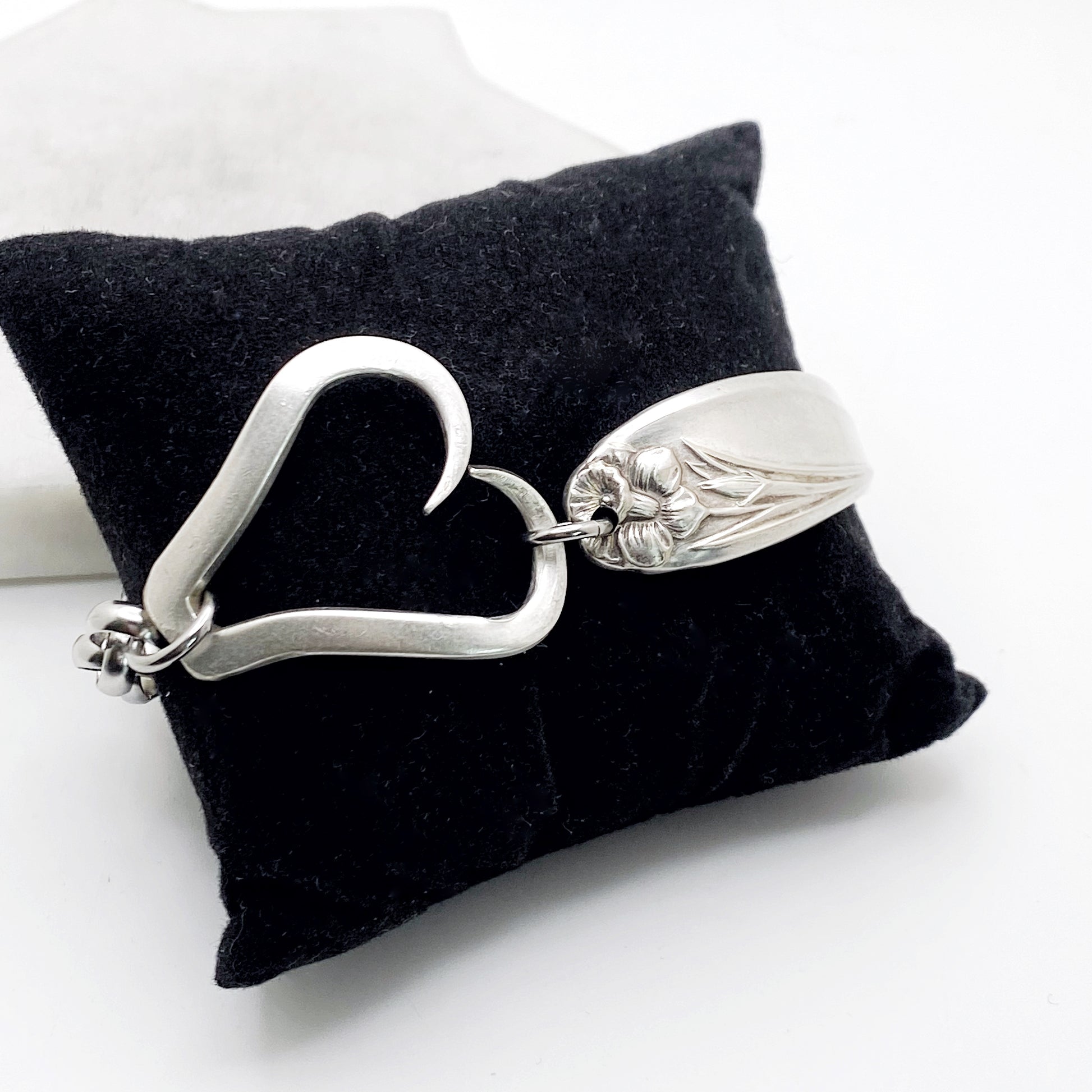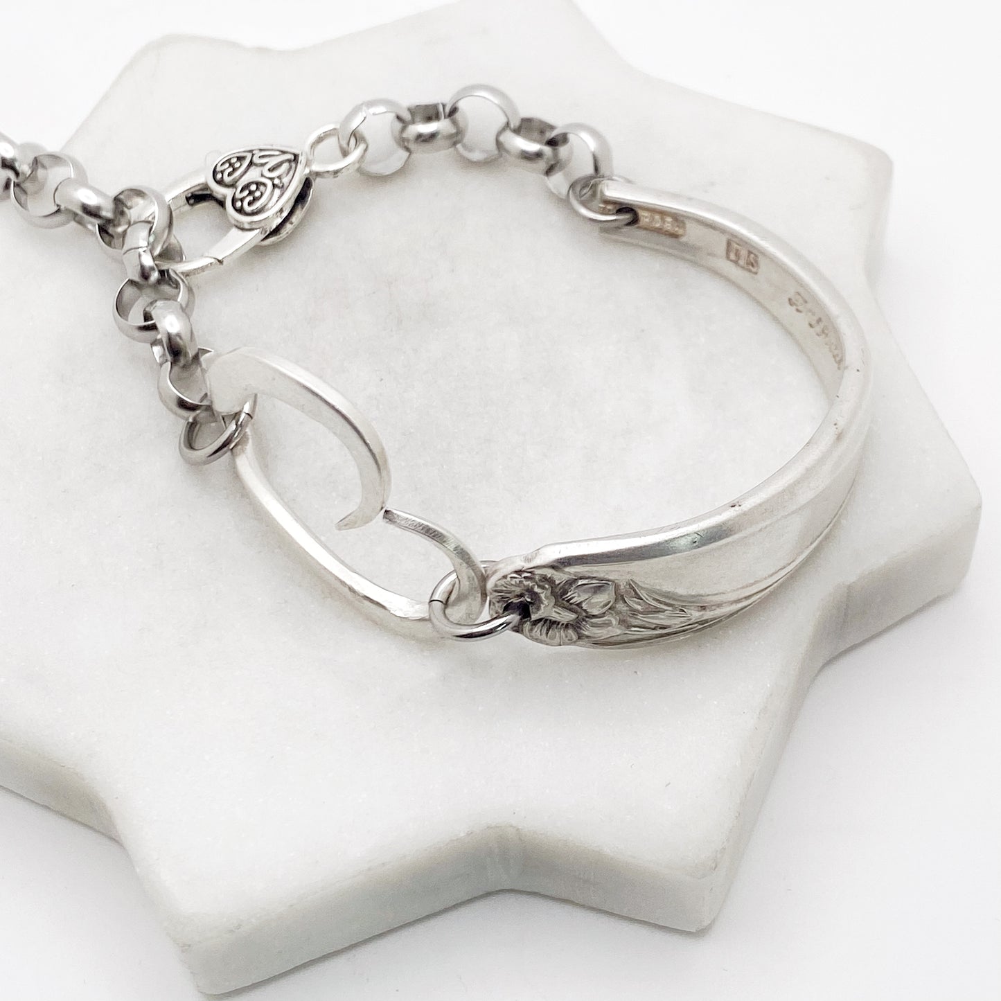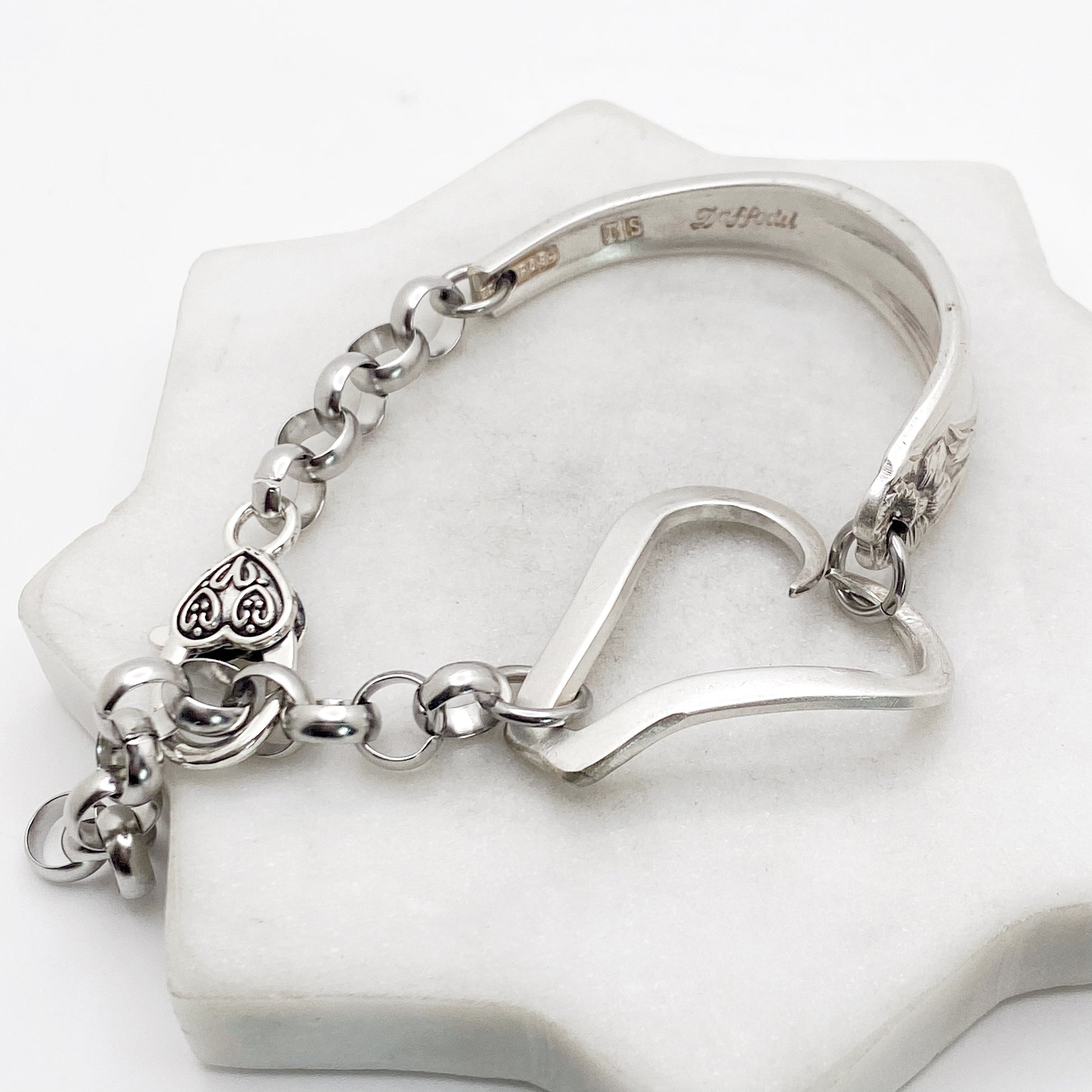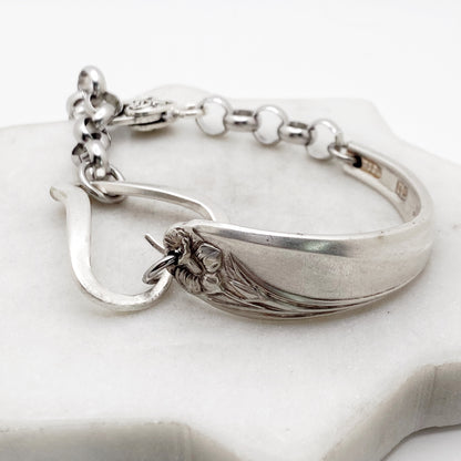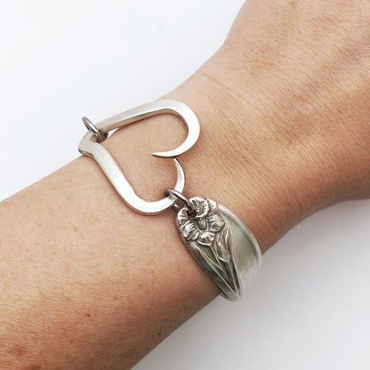 Daffodil 1950, RARE Curly Fork Heart Bracelet, Vintage Spoon Handle, Vintage Fork Bracelet