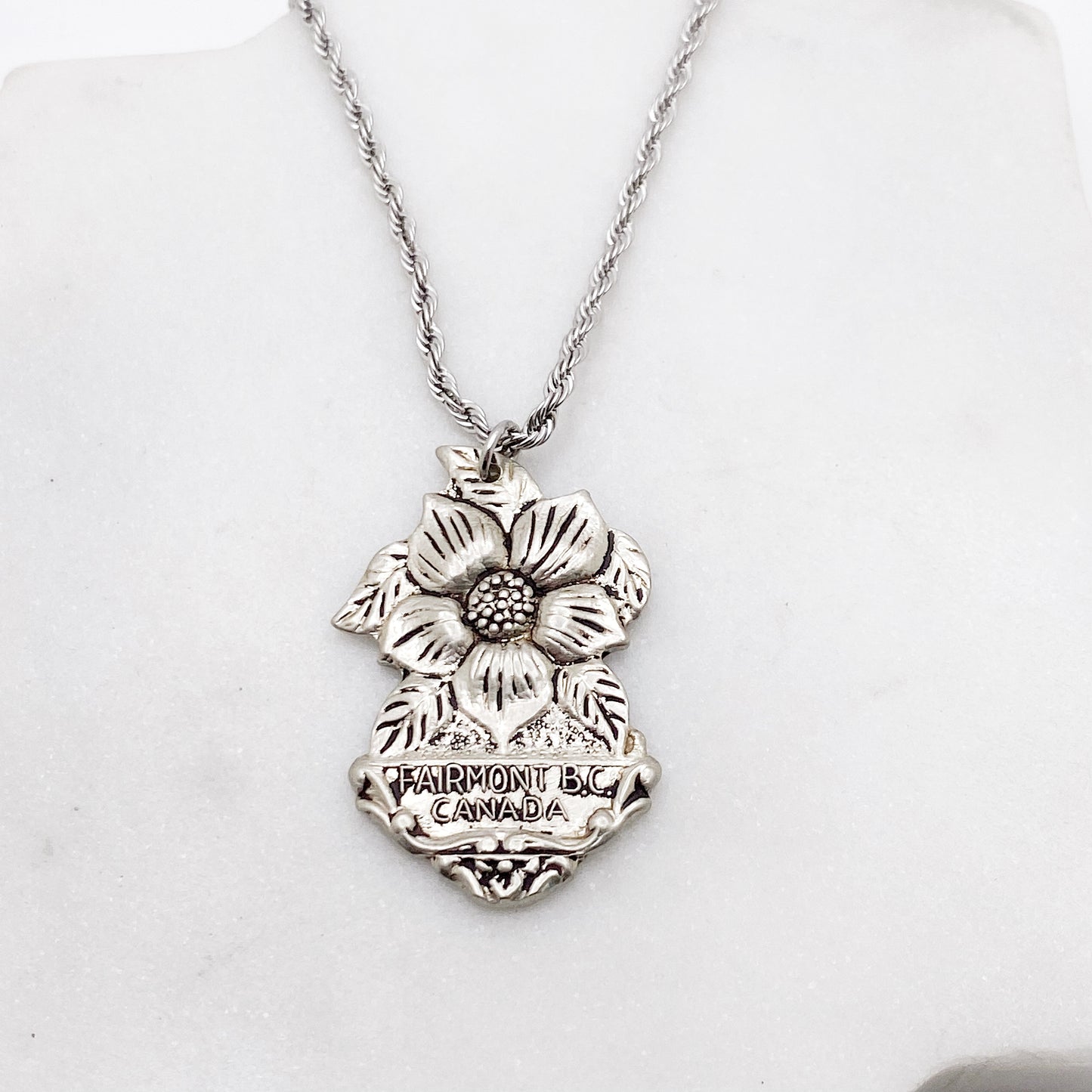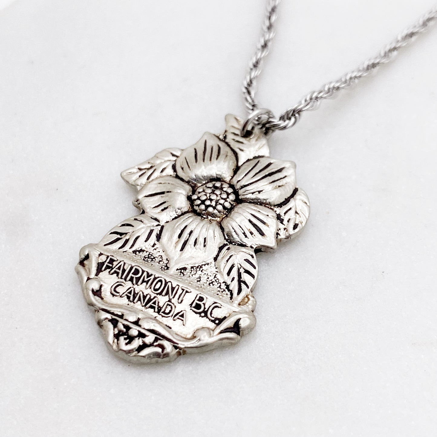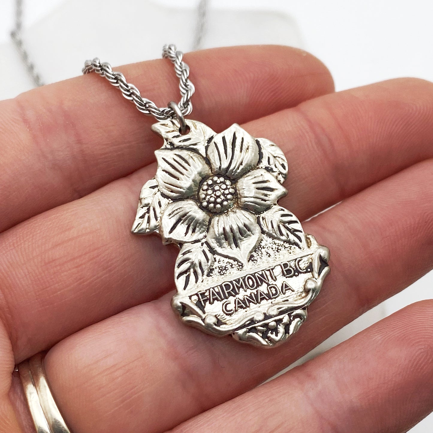 Dogwood Pendant, Fairmont British Columbia Jewelry, Reclaimed Collector's Spoon Necklace, Vintage Souvenir Spoon Jewelry