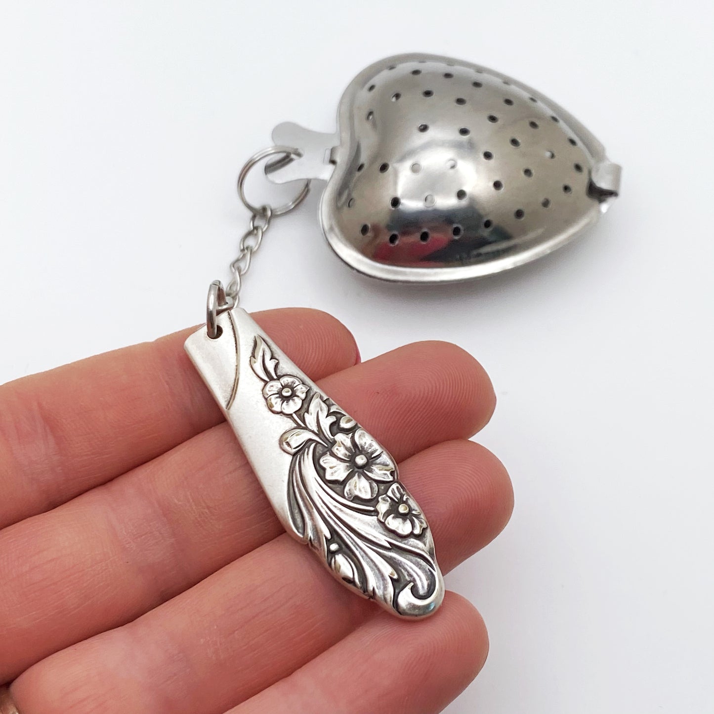 Evening Star 1950 Tea Infuser, Loose Leaf Tea Steeper, Heart Shape Tea Diffuser with chain and Vintage Silverware Charm, Stainless Steel Tea Ball Strainer
