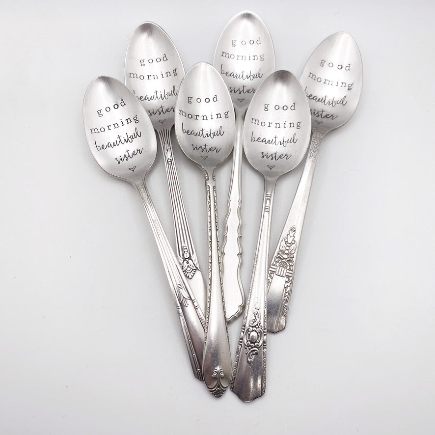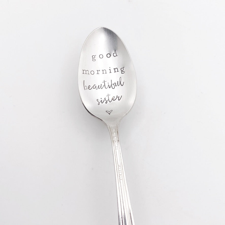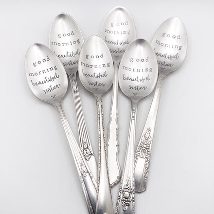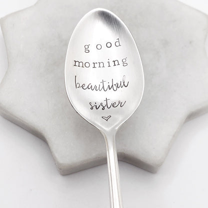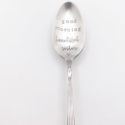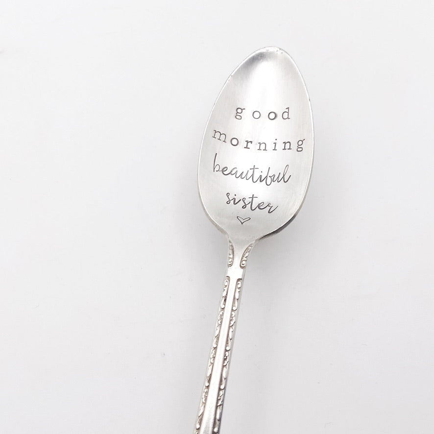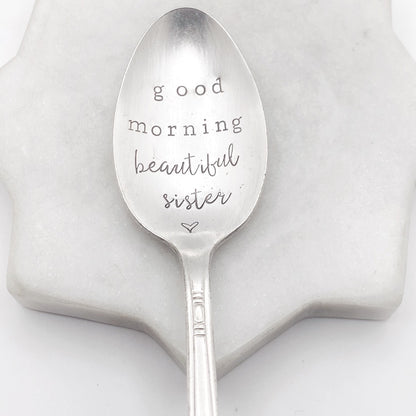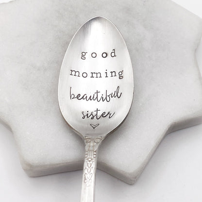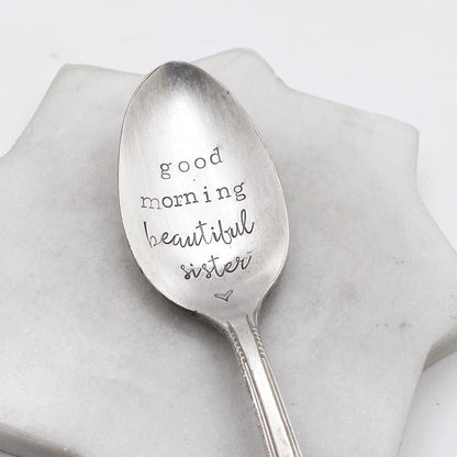Good Morning Beautiful Sister, Hand Stamped Vintage Spoon