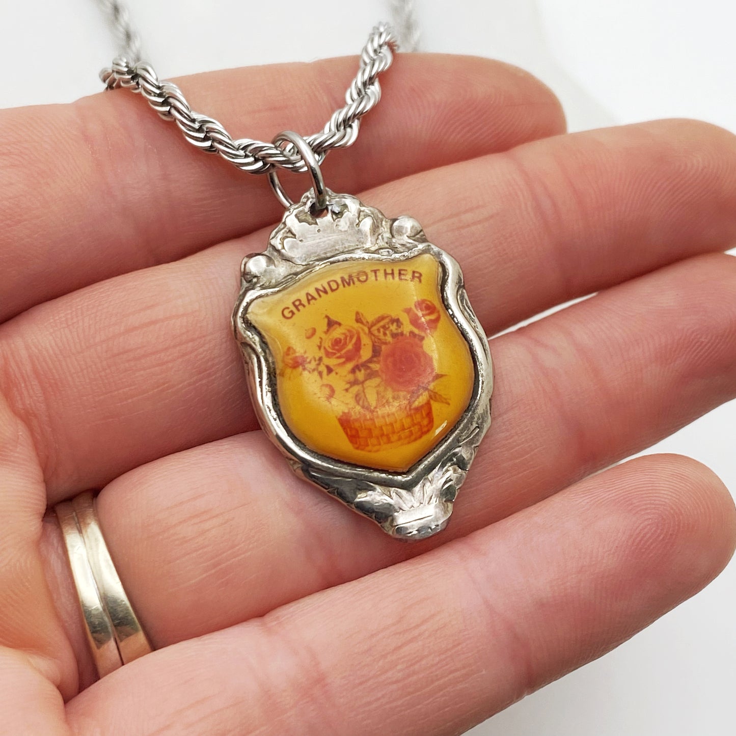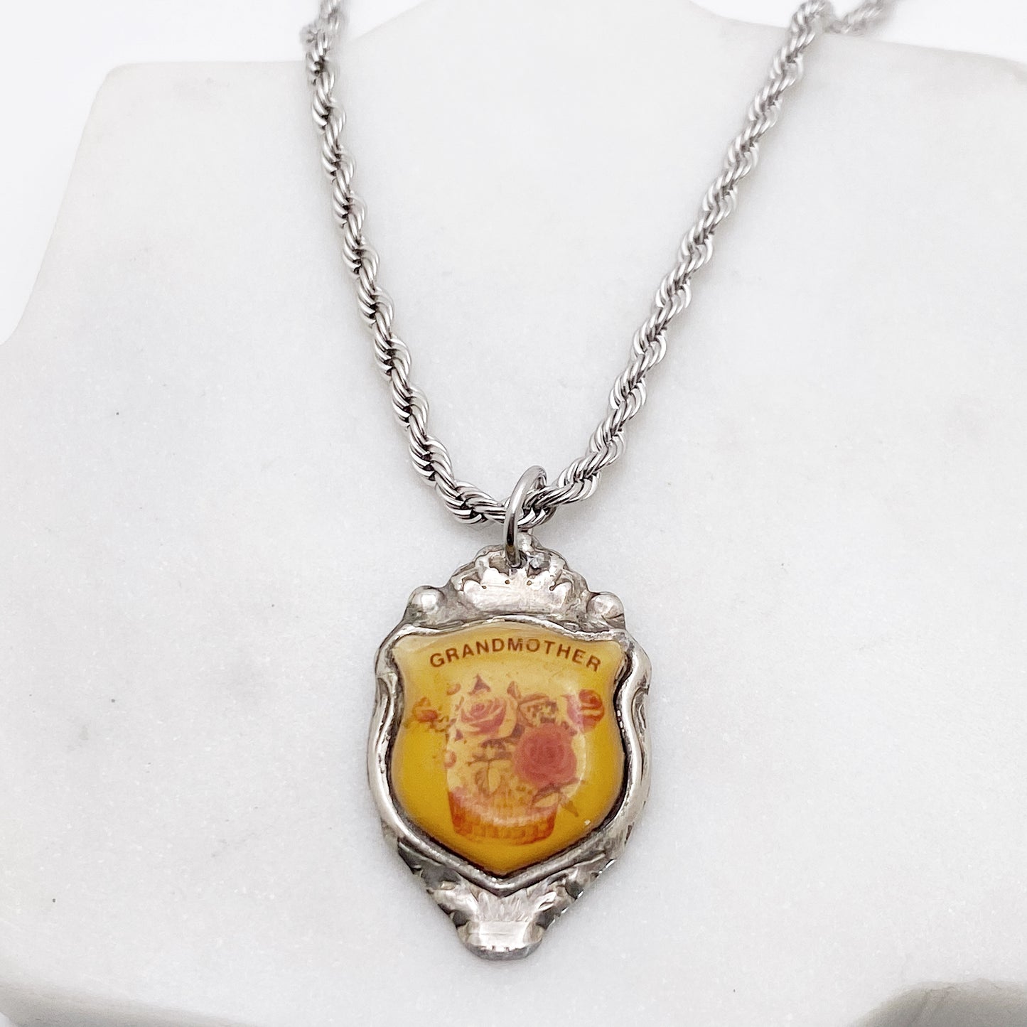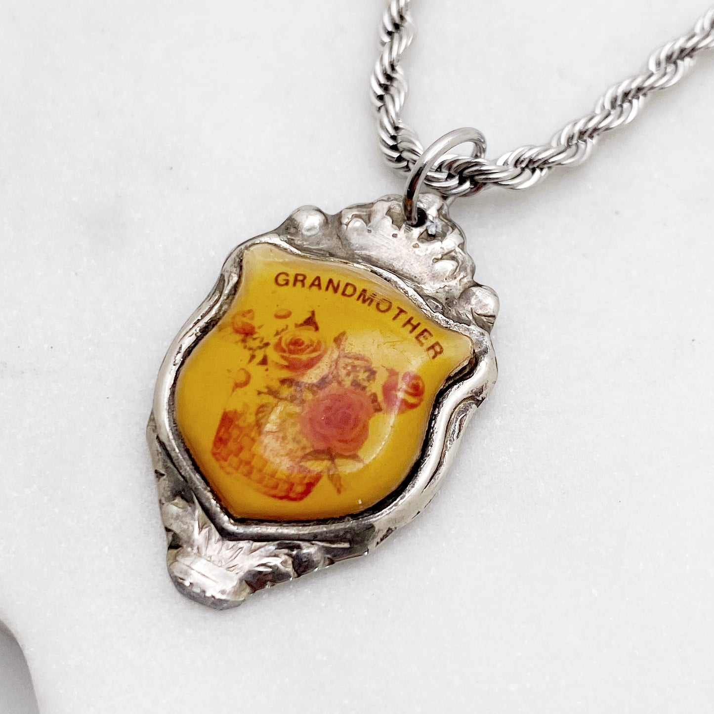 Grandmother Pendant, Flower Jewelry, Reclaimed Collector's Spoon Necklace, Vintage Souvenir Spoon Jewelry