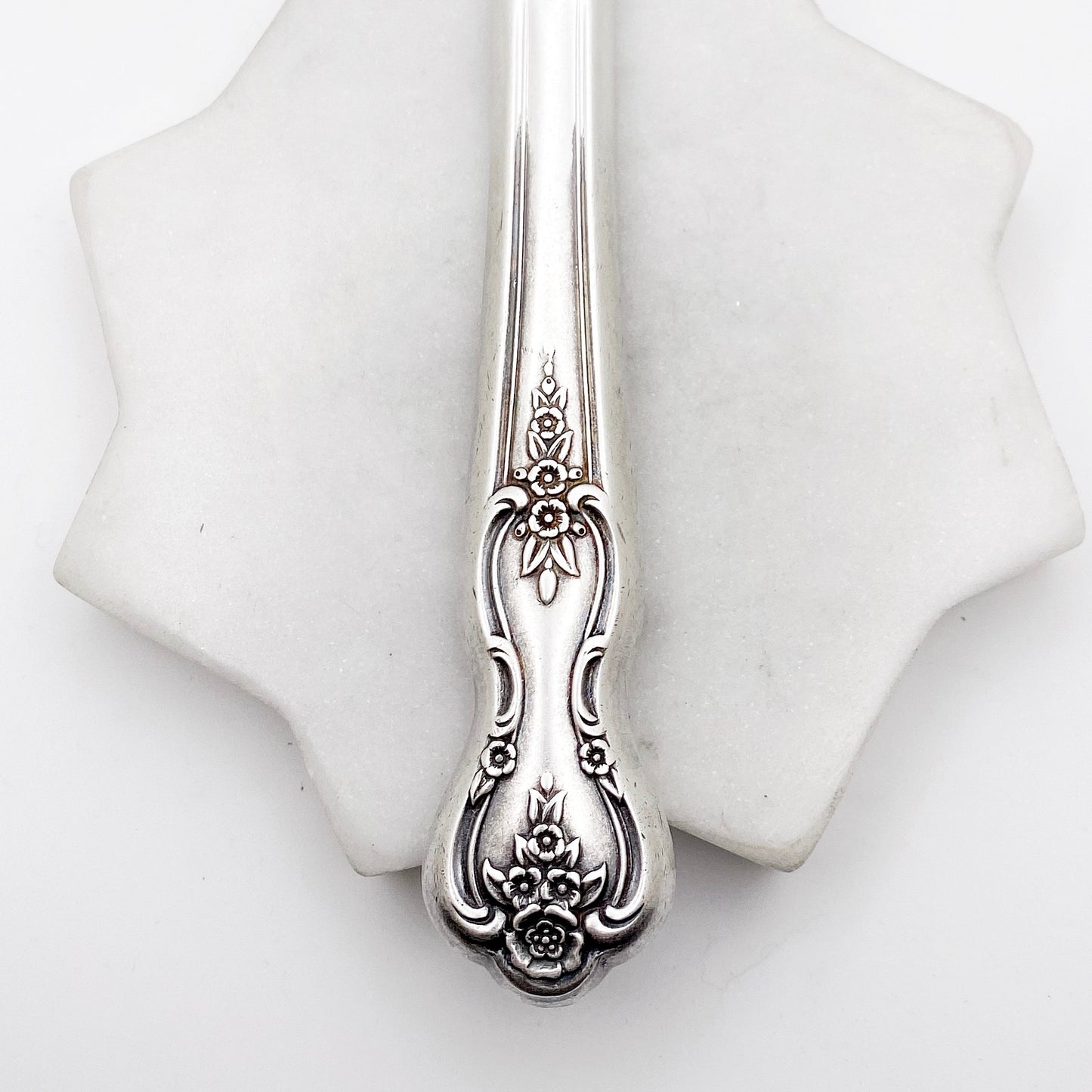 A small piece with a big history, this is a carefully curated & hand stamped piece of antique silverware. Silver pattern name & year is included with packaging (if applicable).
