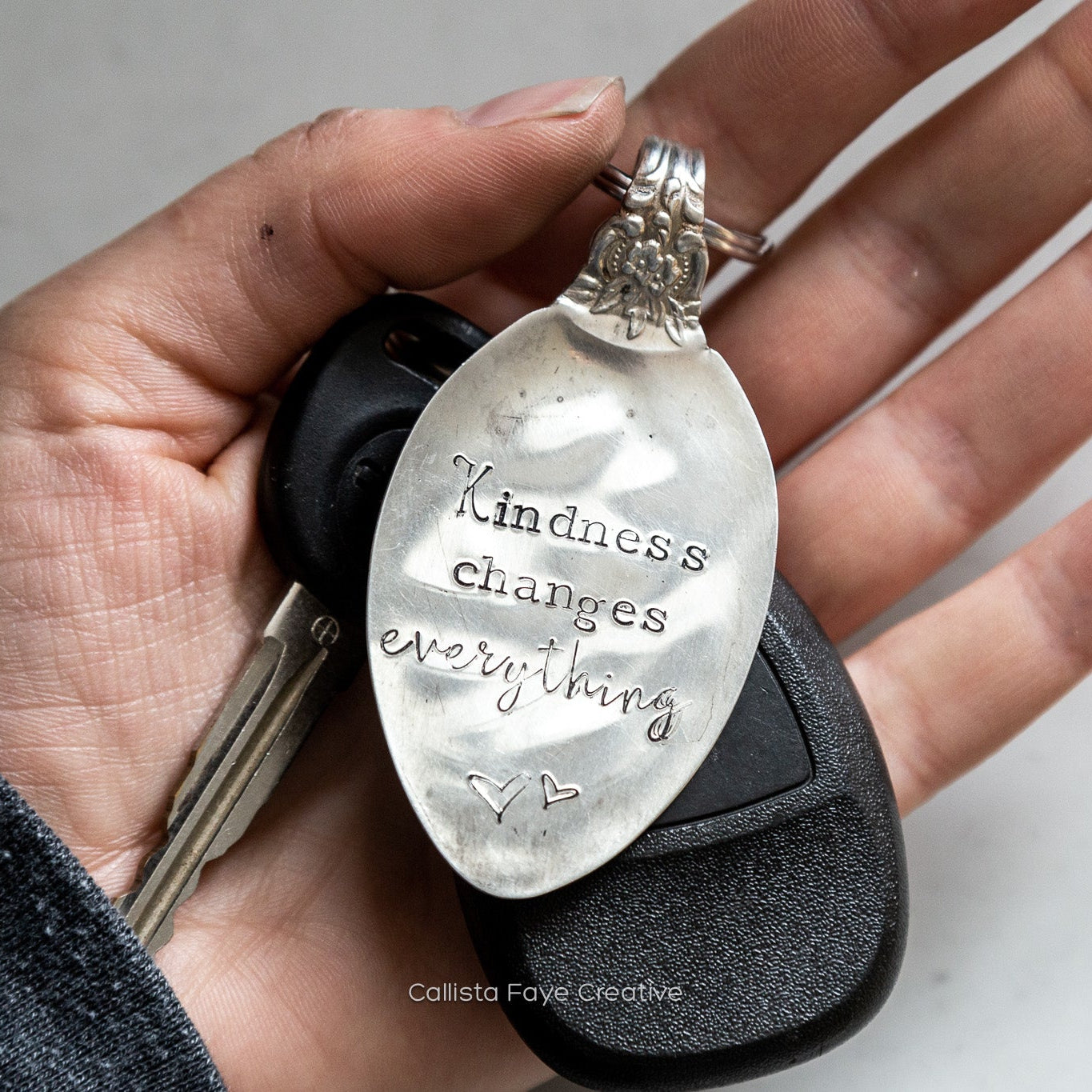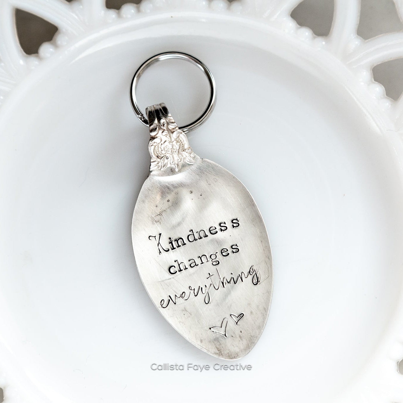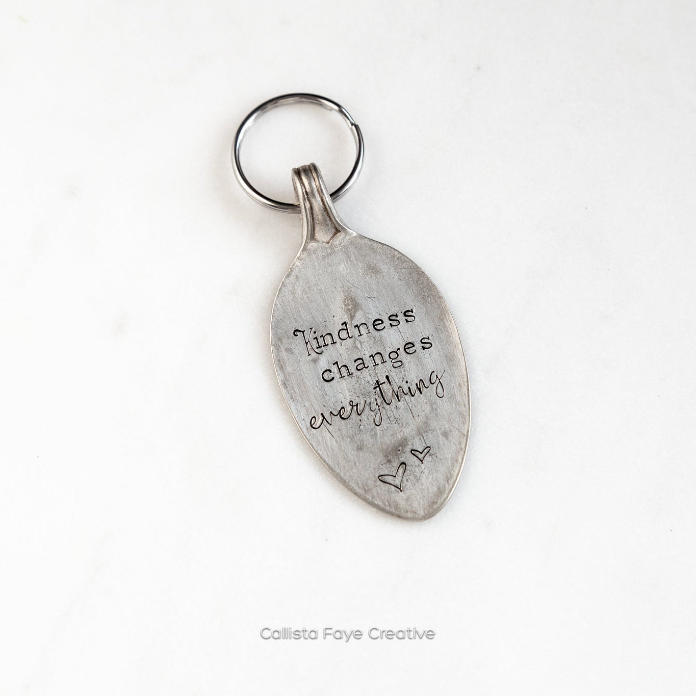 Kindness Changes Everything, Hand Stamped Vintage Spoon Keychain