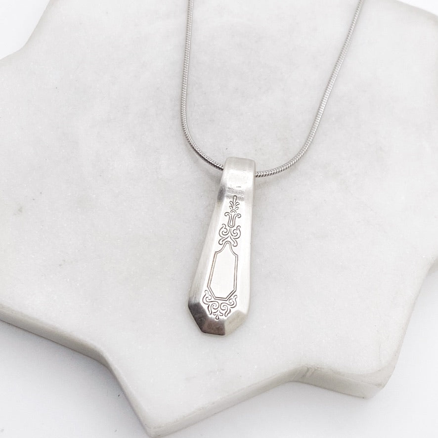 La France 1920, Reclaimed Spoon Handle Pendant, Vintage Silver Necklace