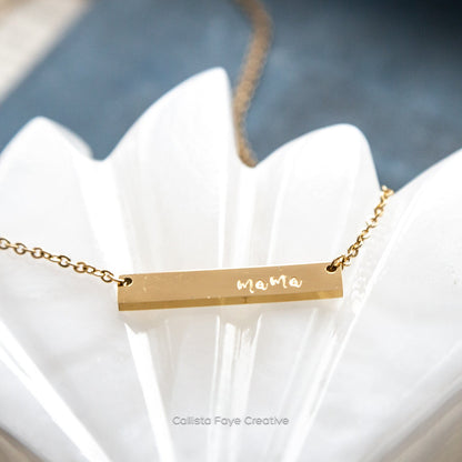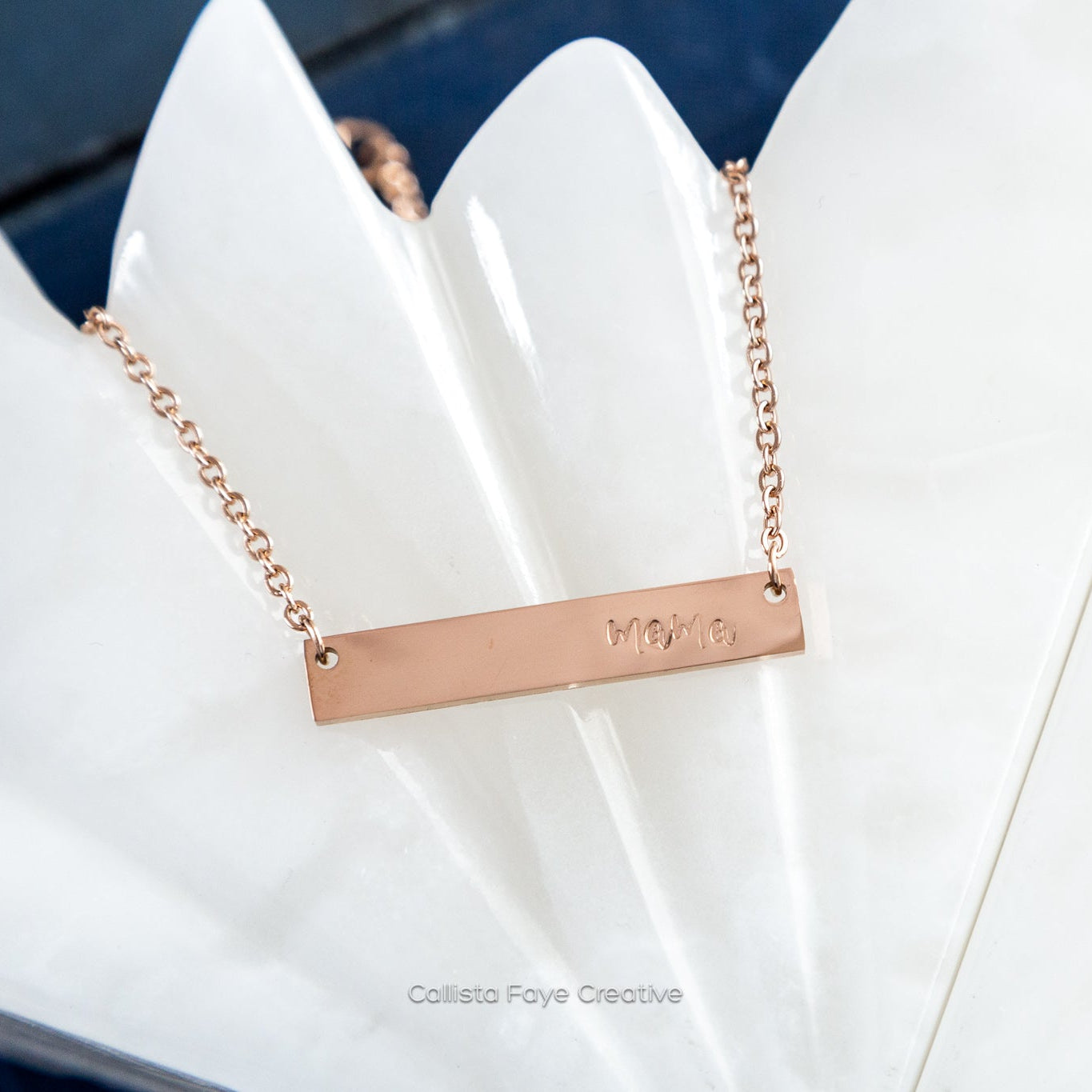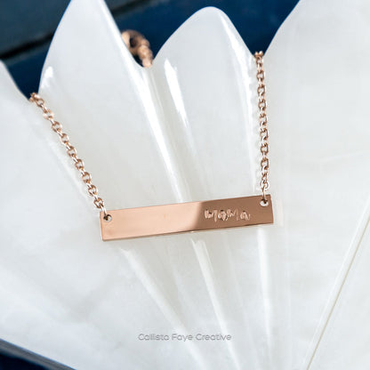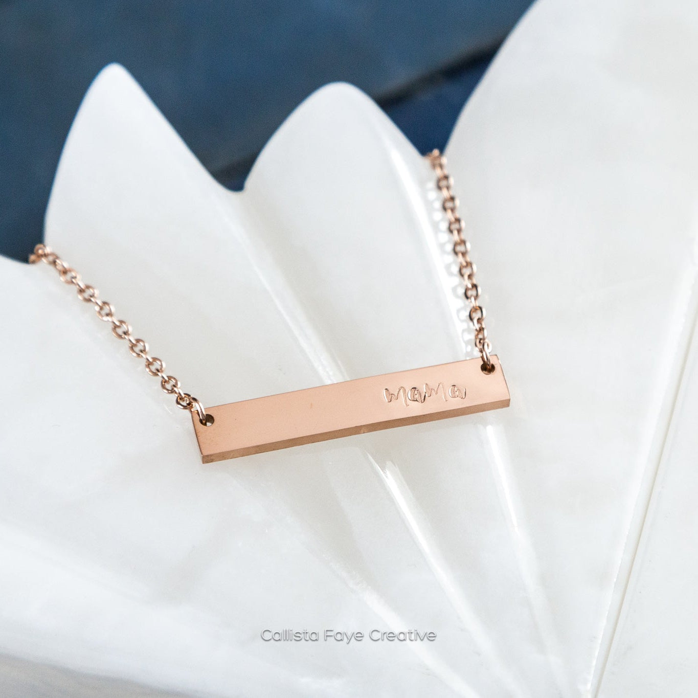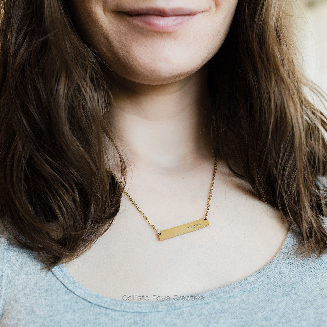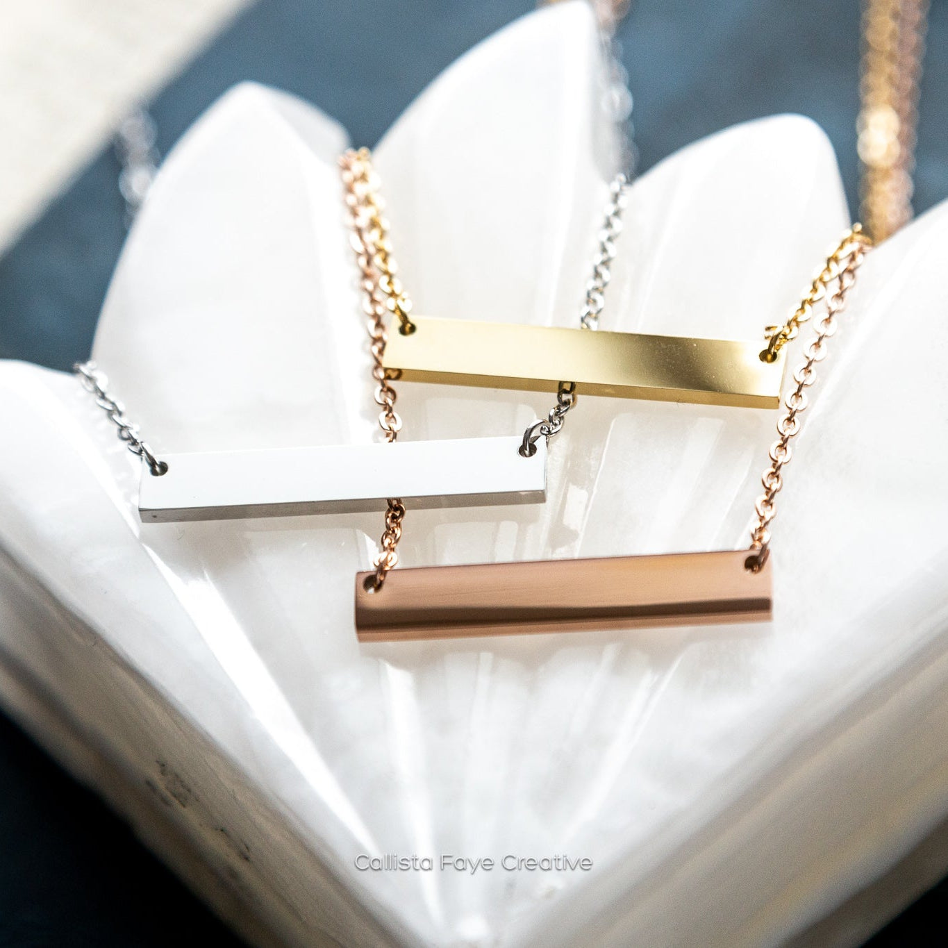 Dainty & minimal, the perfect jewelry for everyday. This necklace features a horizontal bar in gold, silver, or rose gold stainless steel. It looks beautiful on its own, or layered with your other favourite pieces. Made with care by me, for you to wear your love.