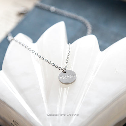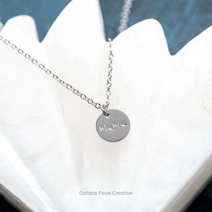 Dainty & minimal, the perfect jewelry for everyday. This necklace features a petite coin pendant in gold, silver, or rose gold stainless steel. It looks beautiful on its own, or layered with your other favourite pieces. Made with care by me, for you to wear your love.