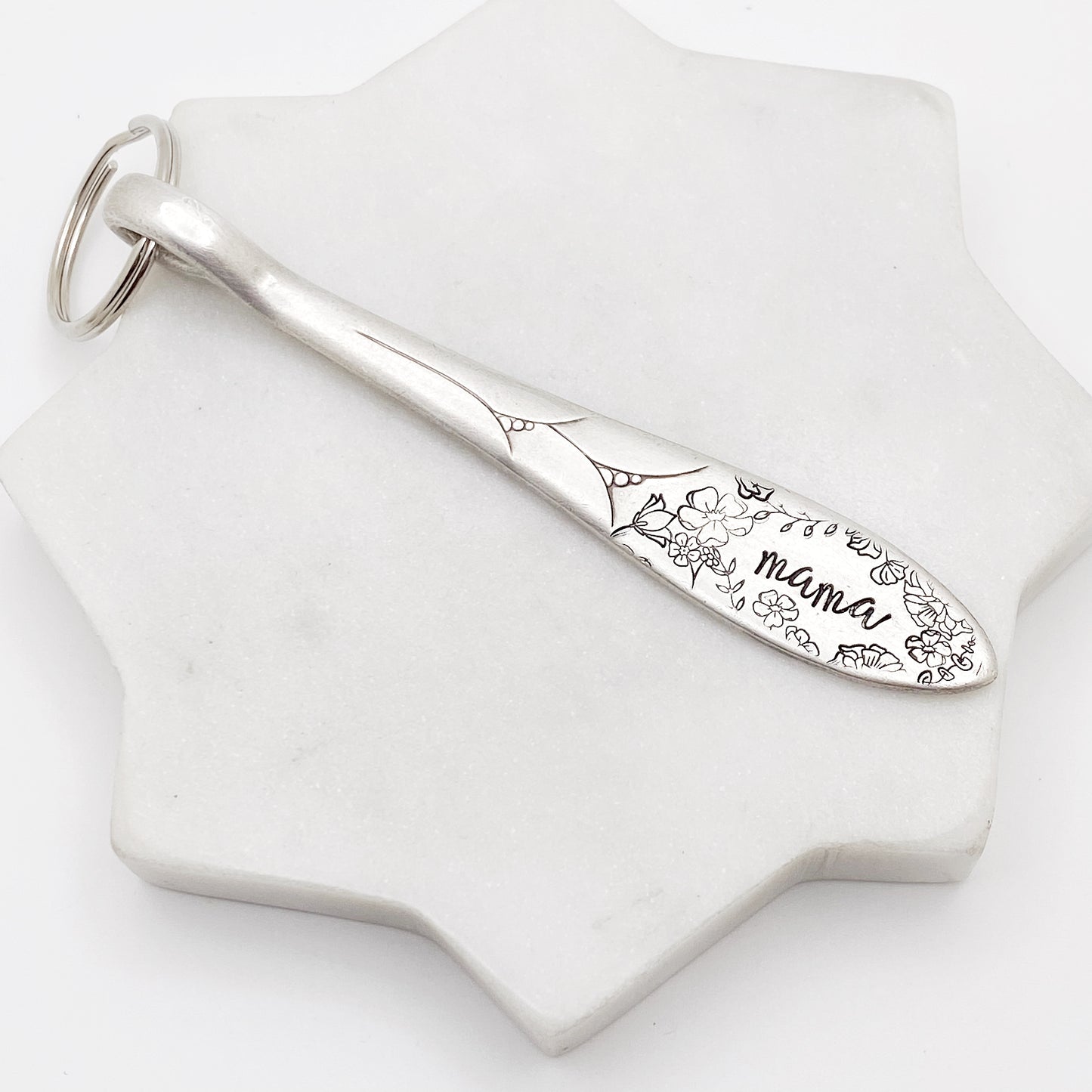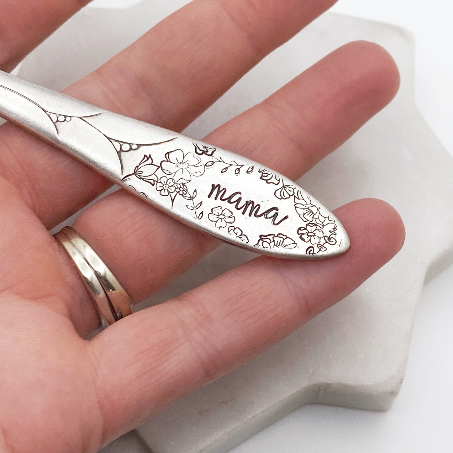 A small piece with a big history, this is a carefully curated & hand stamped piece of antique silverware. Silver pattern name & year is included with packaging (if applicable).
