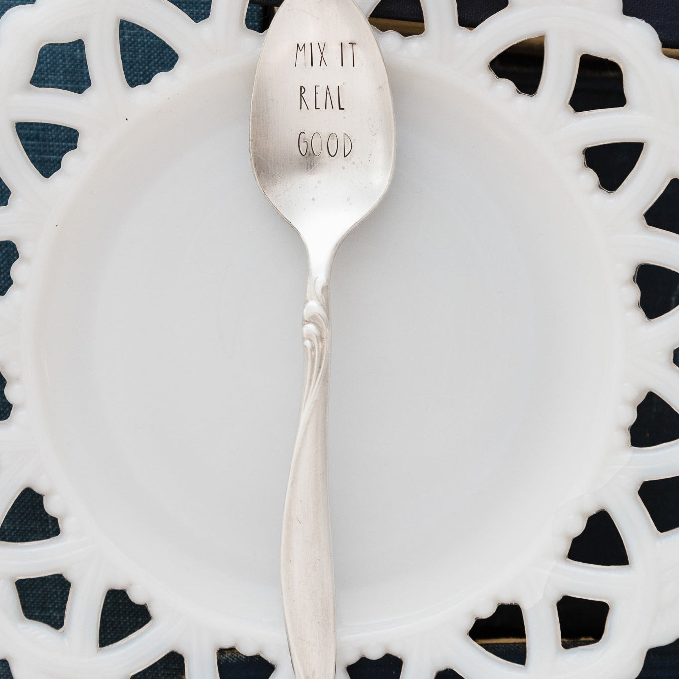 Mix It Real Good, Hand Stamped Vintage Spoon
