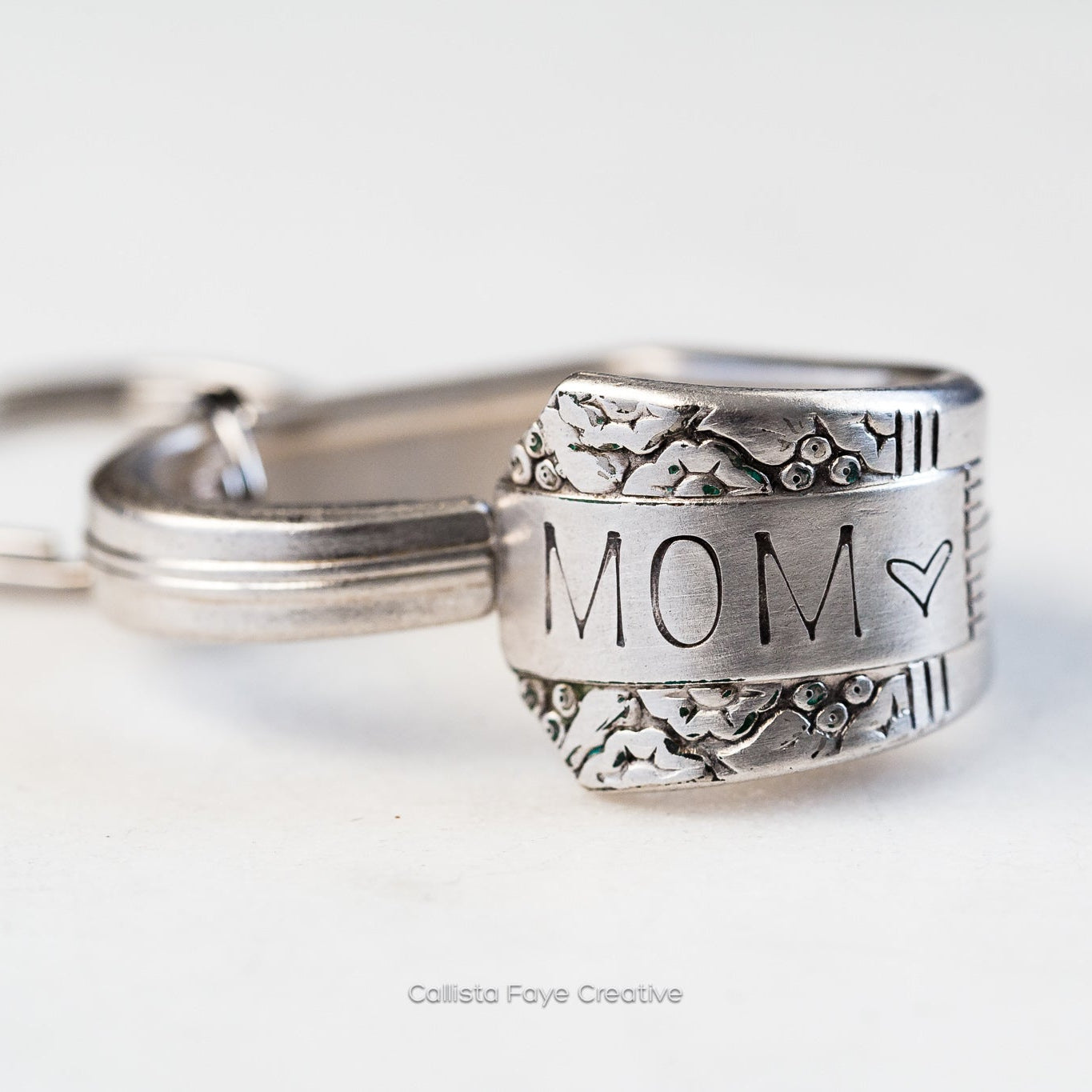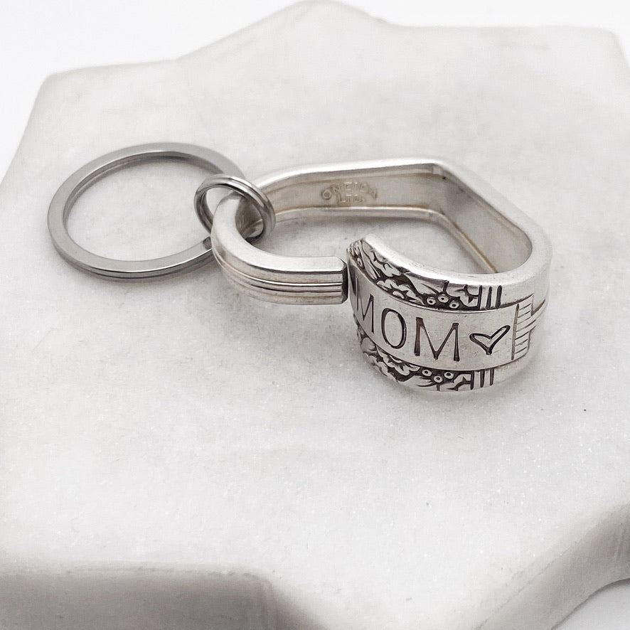 Mom, Park Lane 1936, Floating Heart Keychain, Vintage Spoon Keychain