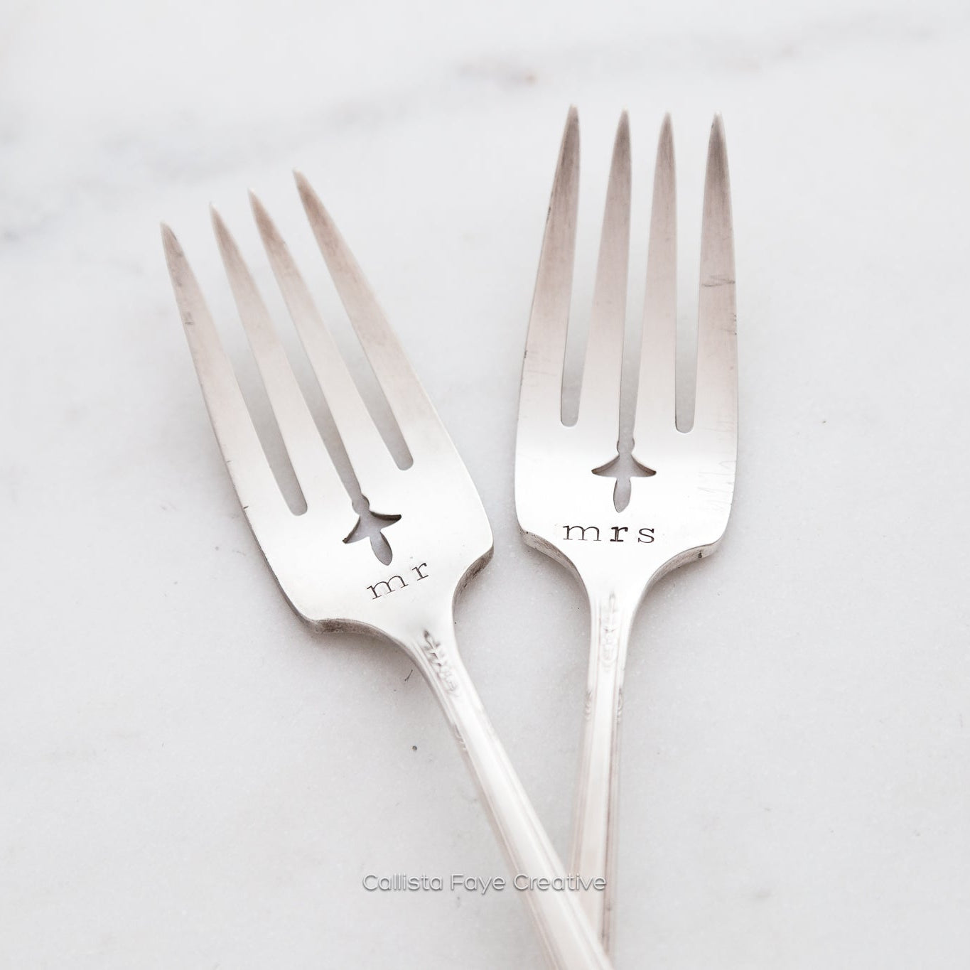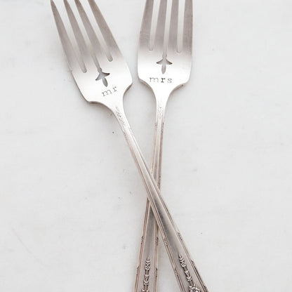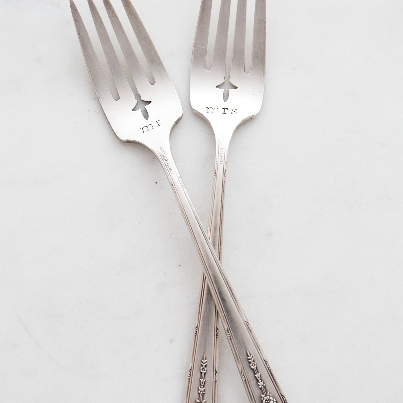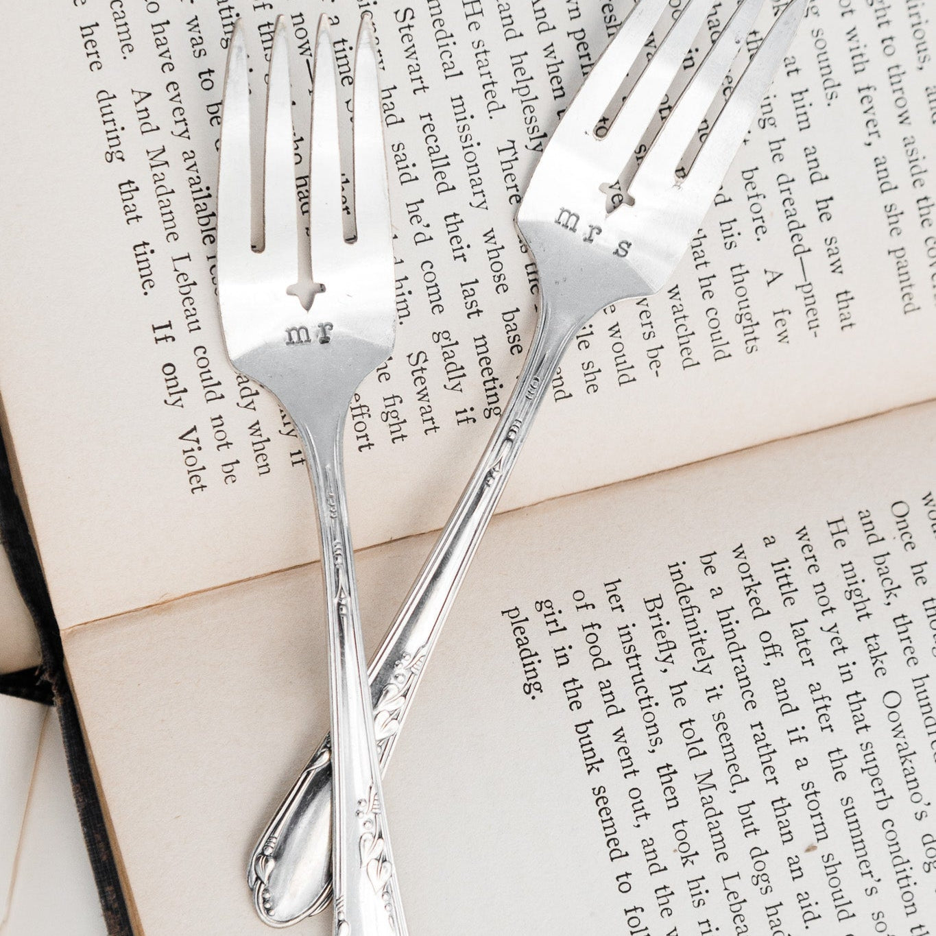 Mr & Mrs, Wedding Fork SET, Hand Stamped Vintage Fork