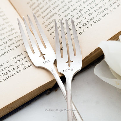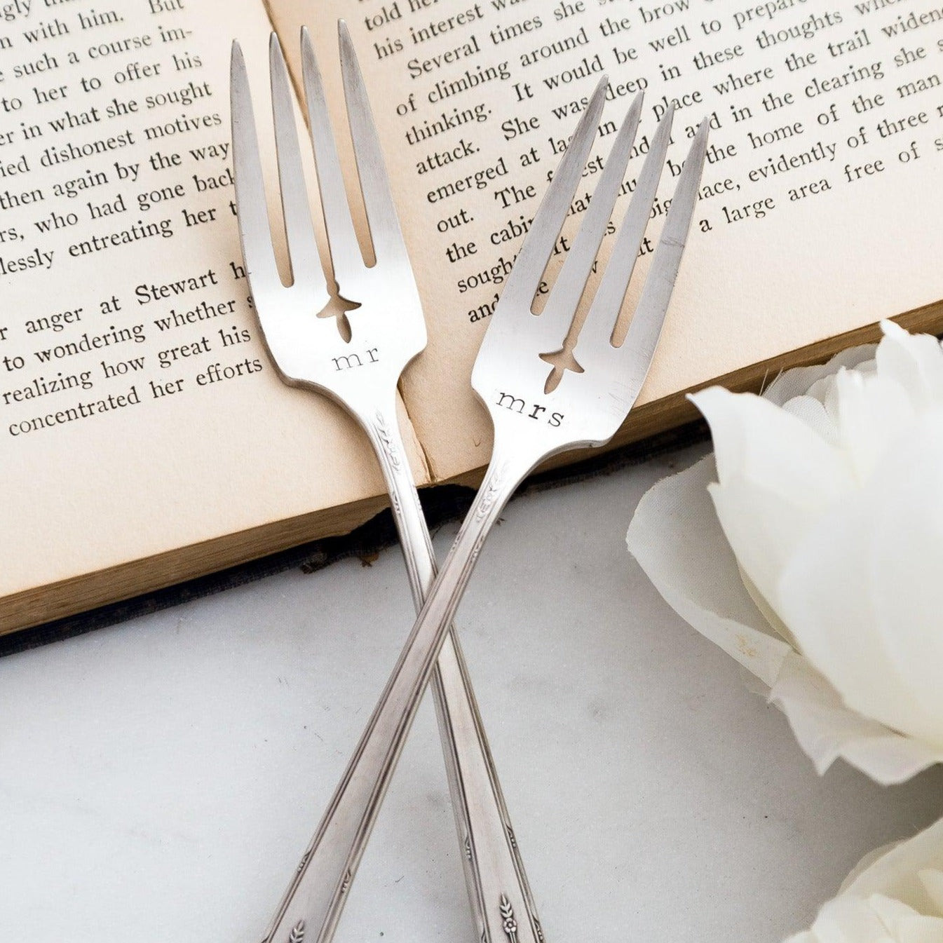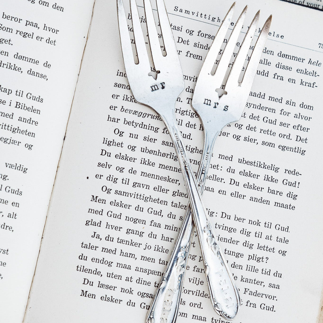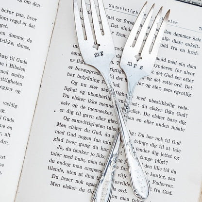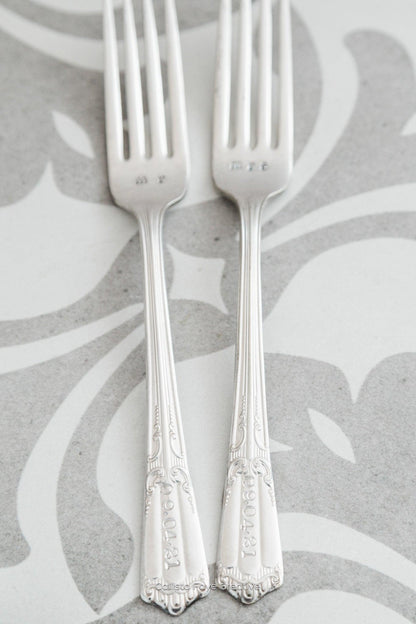 Mr & Mrs, Wedding Fork SET, Hand Stamped Vintage Fork