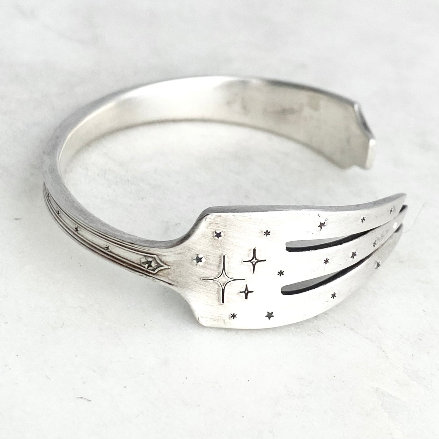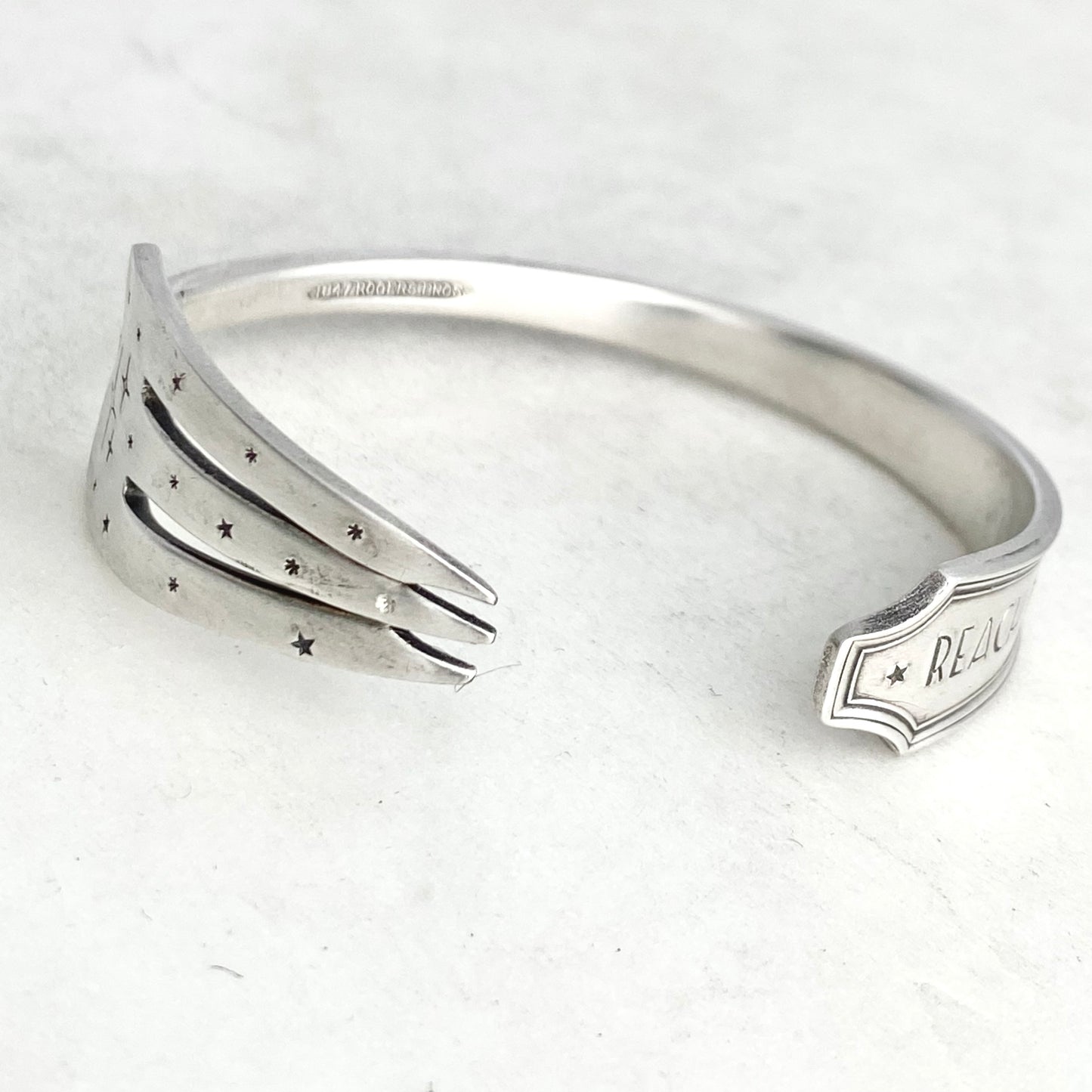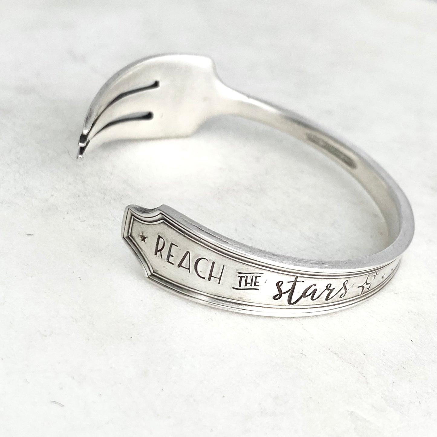 Reach the Stars, Legacy 1928, Cocktail Fork Cuff Bracelet, Hand Stamped Vintage Seafood Fork