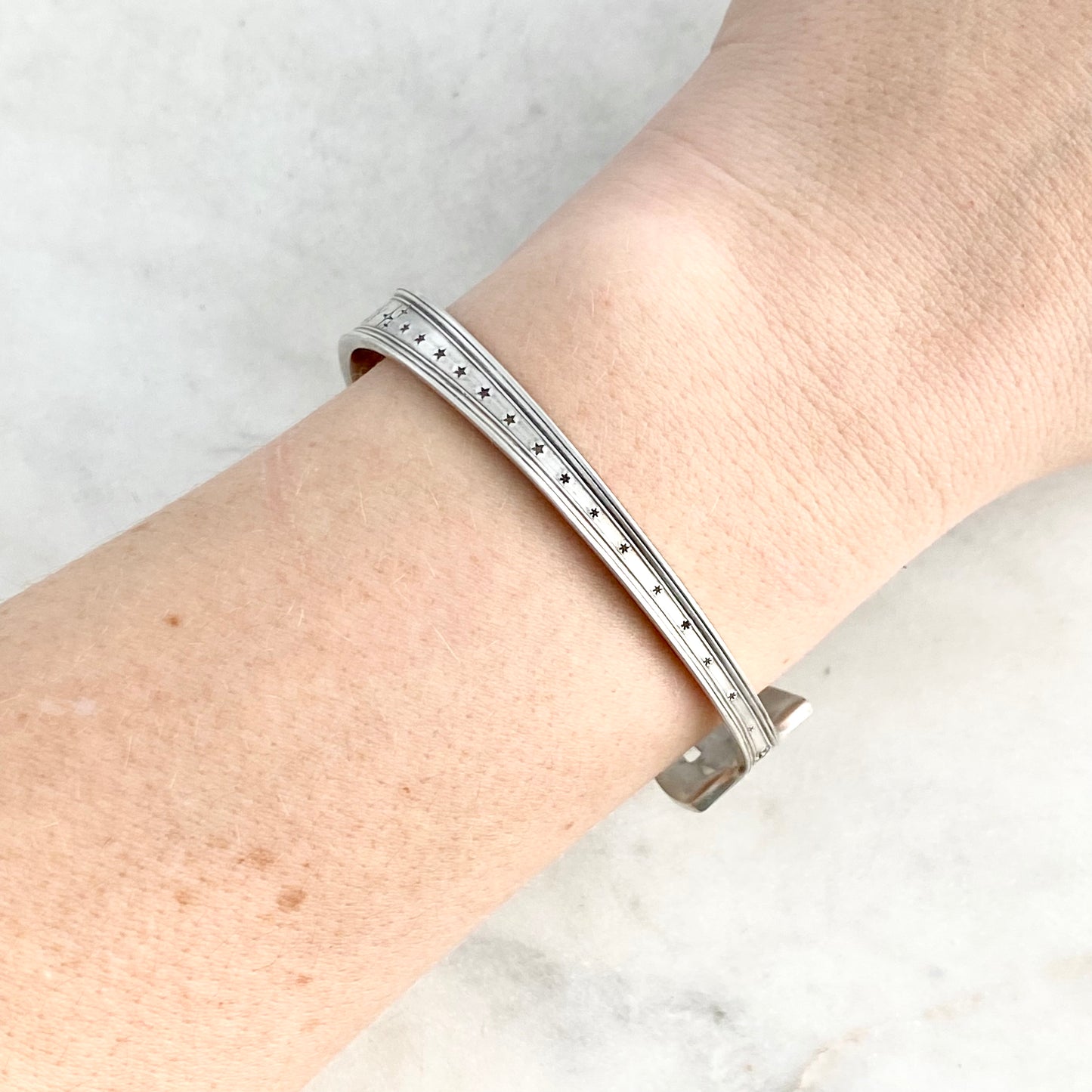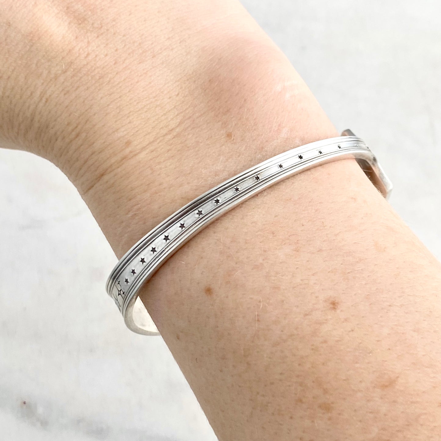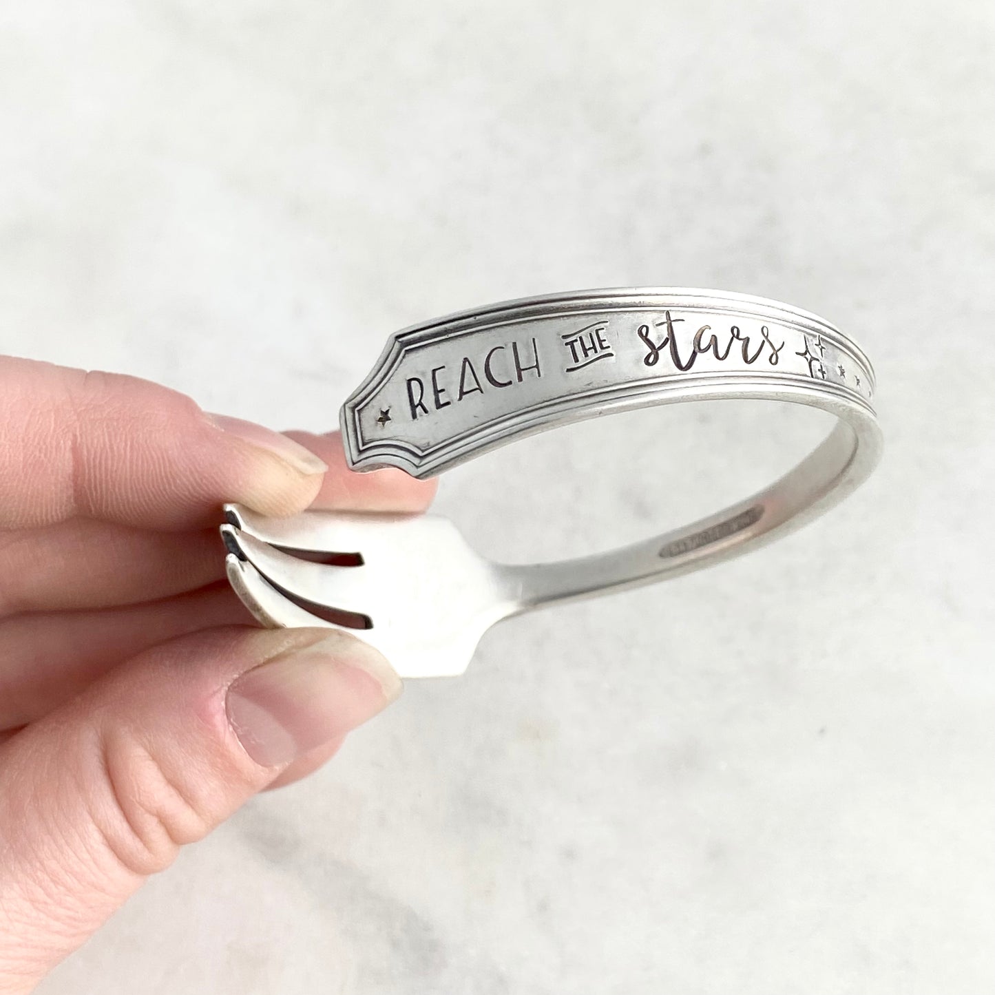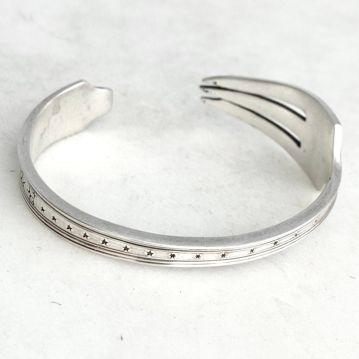 Reach the Stars, Legacy 1928, Cocktail Fork Cuff Bracelet, Hand Stamped Vintage Seafood Fork