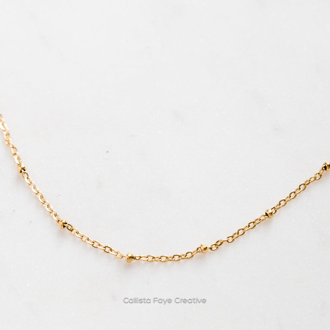 Dainty & minimal, the perfect jewelry for everyday. This necklace features a satellite chain in gold or silver stainless steel. It looks beautiful on its own, or