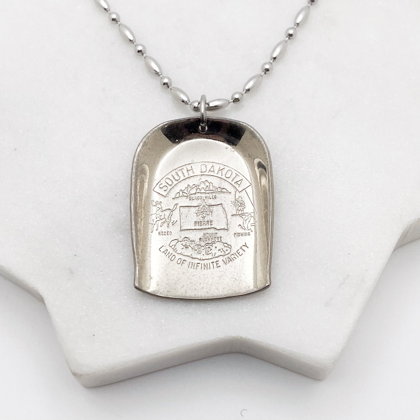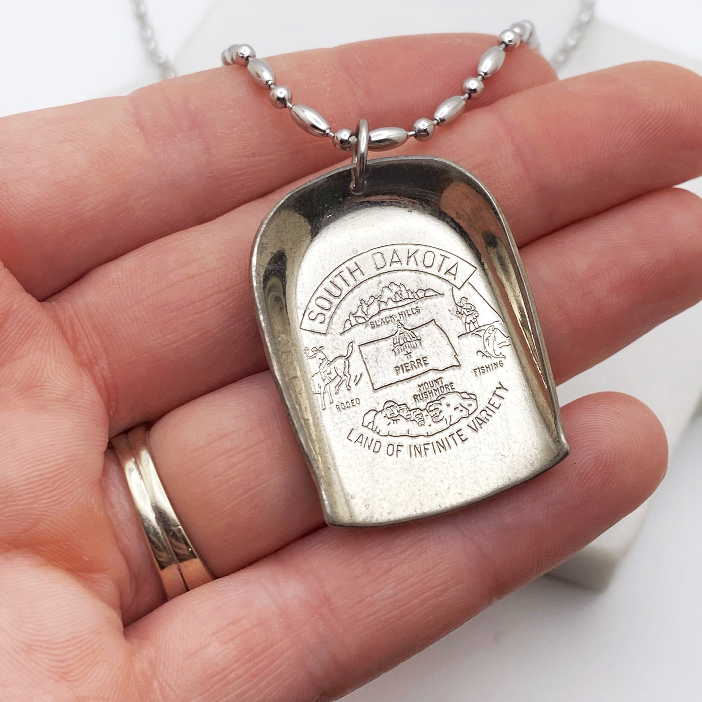 South Dakota Pendant, United States Jewelry, Reclaimed Collector's Spoon Necklace, Vintage Souvenir Spoon Jewelry
