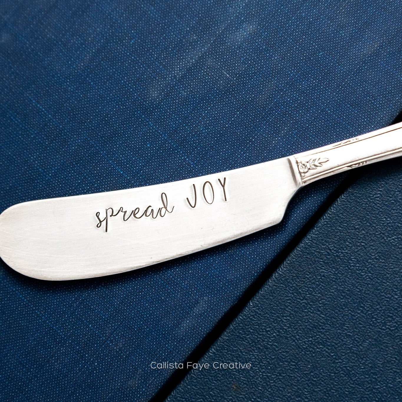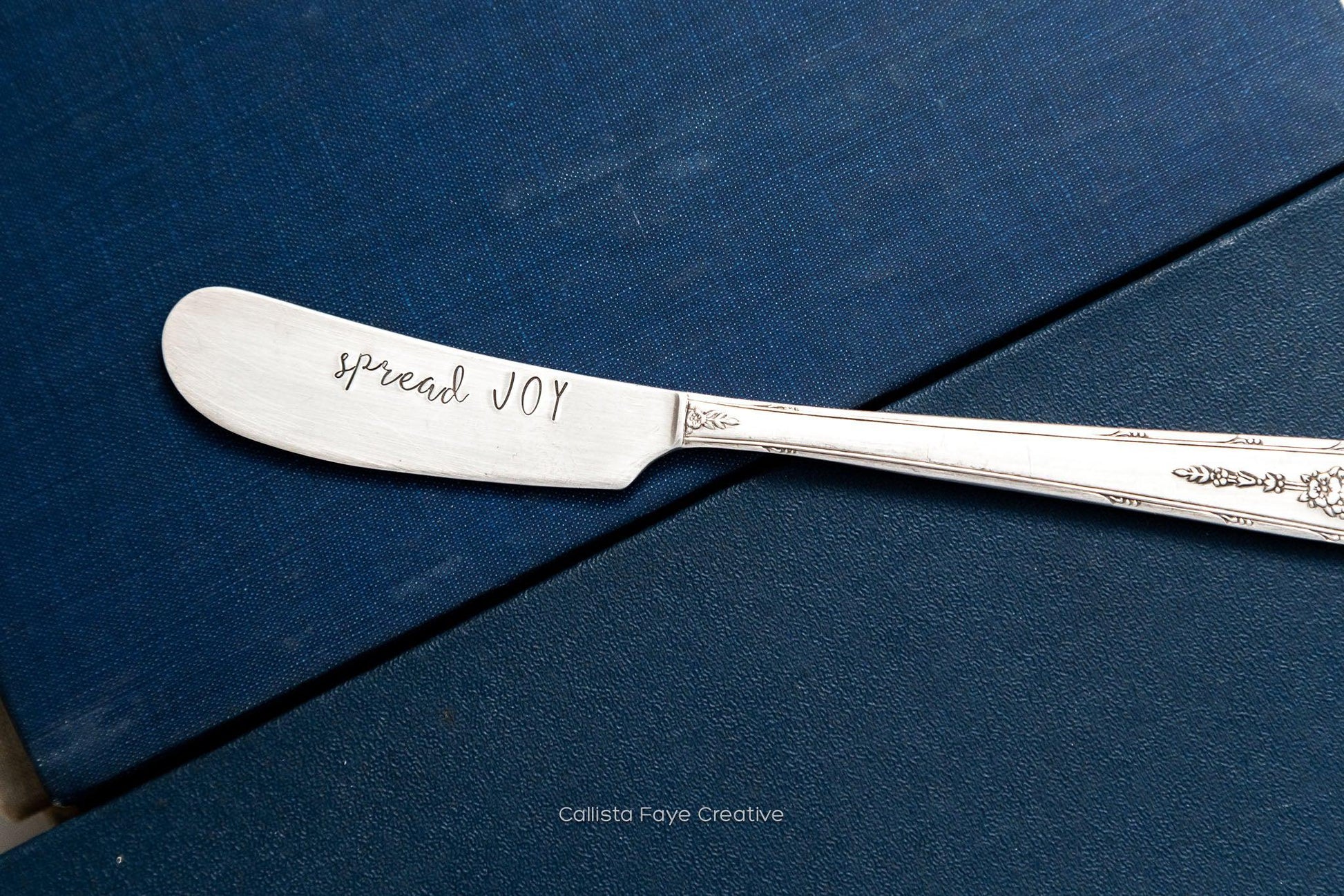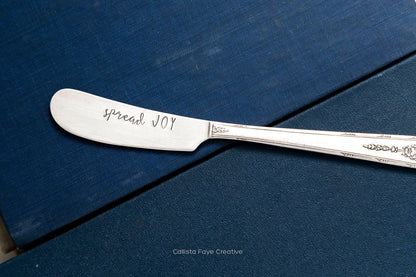 Unique, hand stamped vintage silver plated butter / cheese spreader.